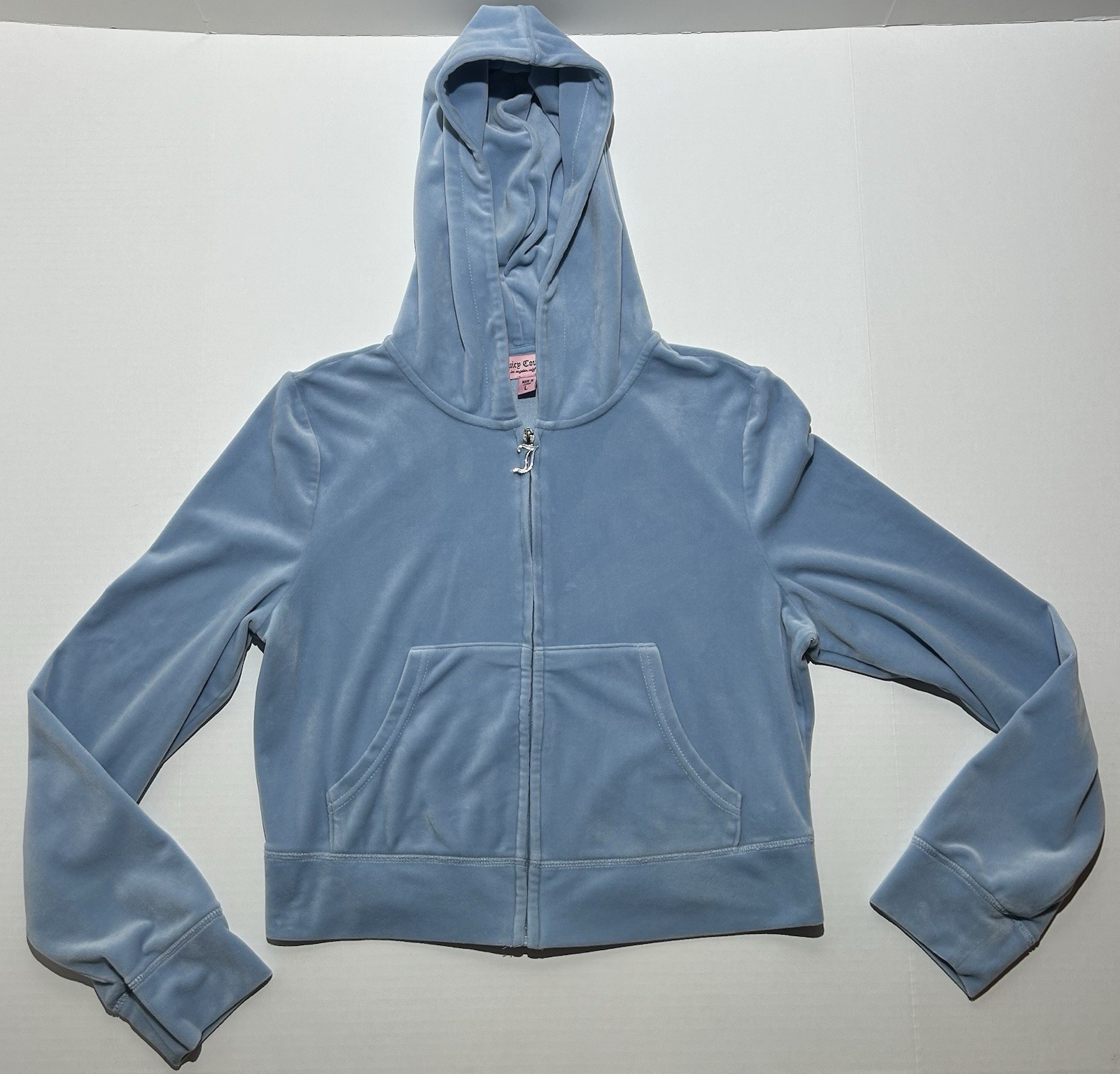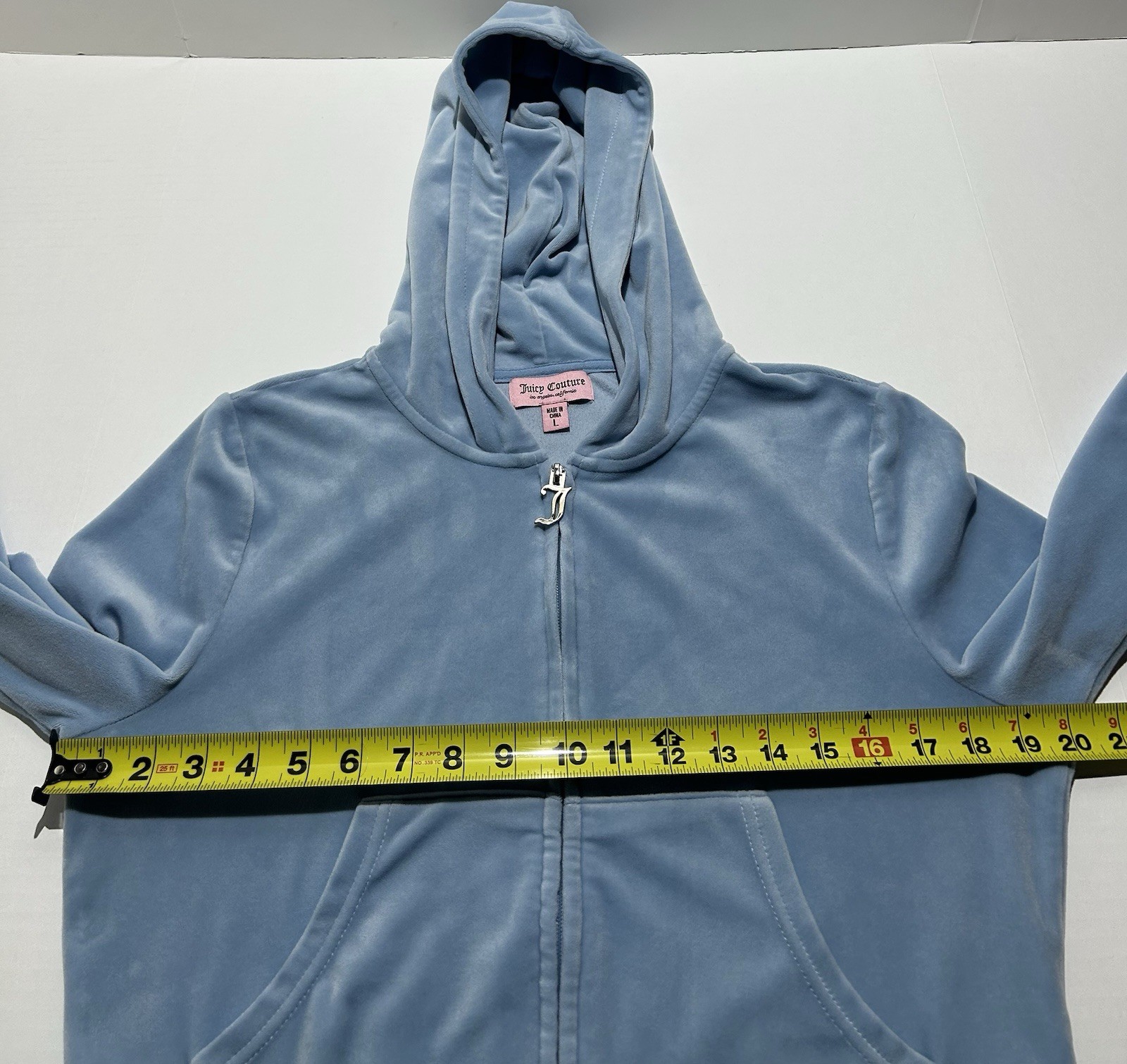 Juicy Couture Women's Blue Velour Tracksuit Set OG Bling Hoodie Pant Size Large