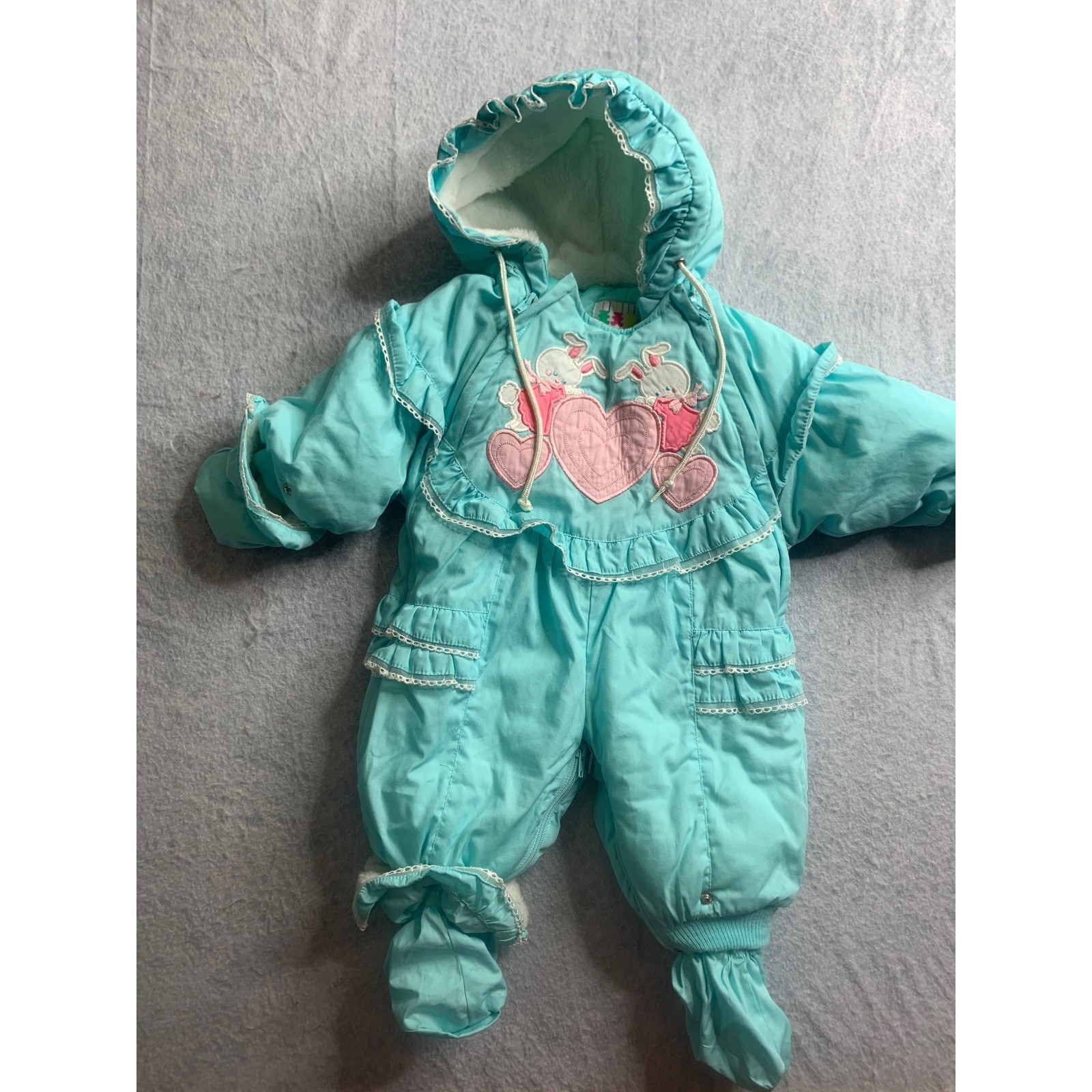 Baby Fog London Fog Turquoise Bunny Heart Snowsuit Bunting 12M VTG 90s rare