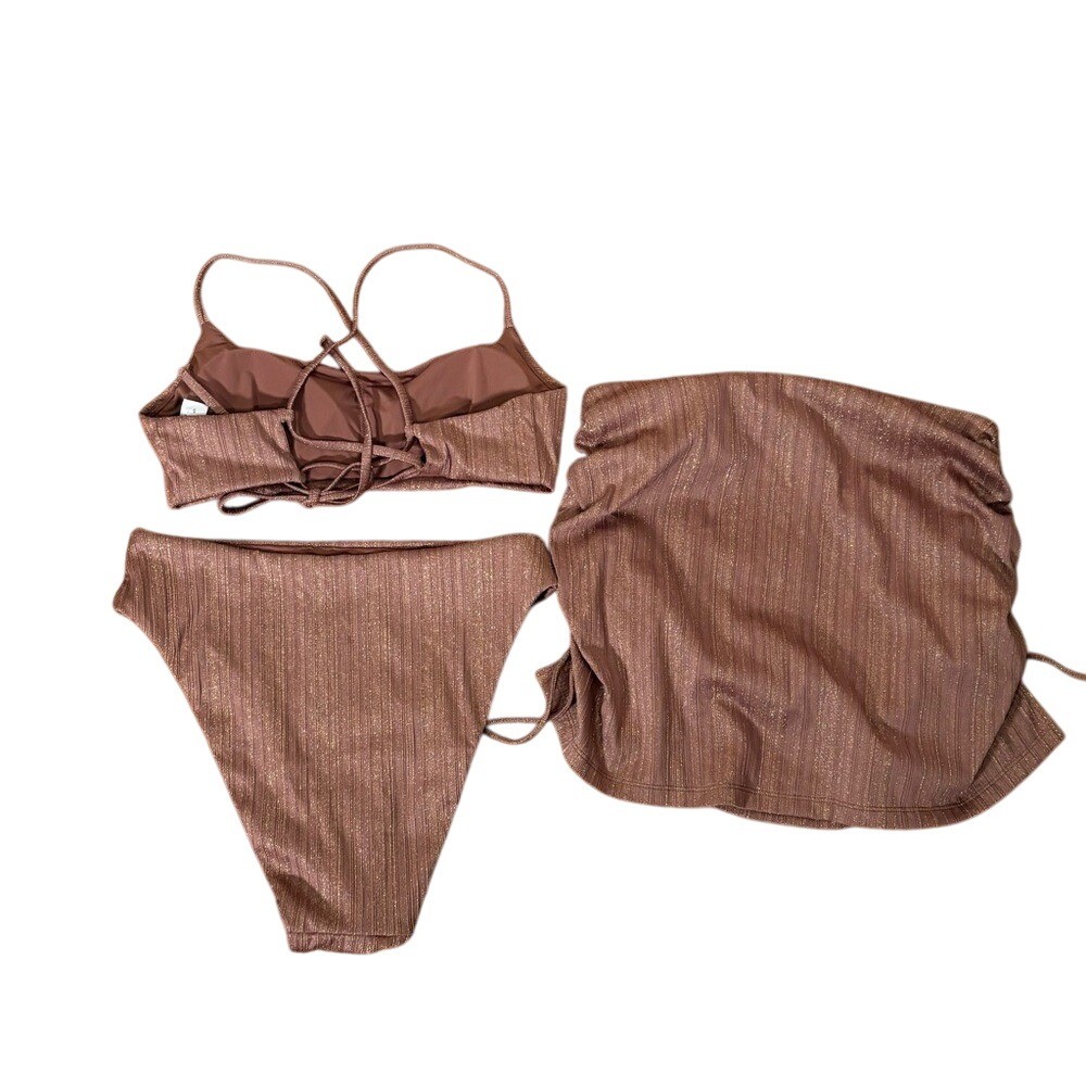 как выглядит Andie Bikini Set Fiji Top High Waisted Bottom Cover-up Latte Sparkle Small NWT фото