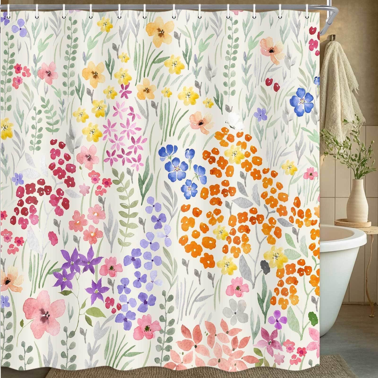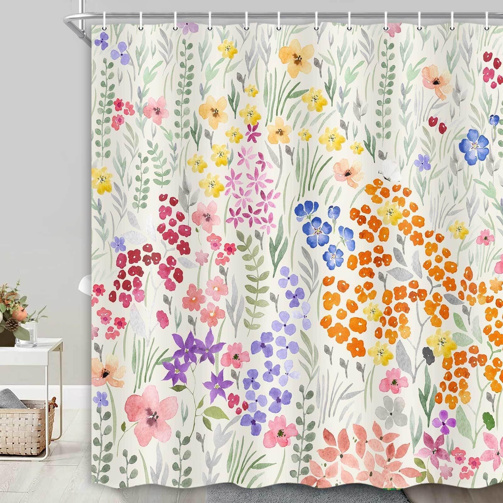 Cute Floral Shower Curtain,Colorful Flower Fabric Spring Boho Girls Girly Wil...