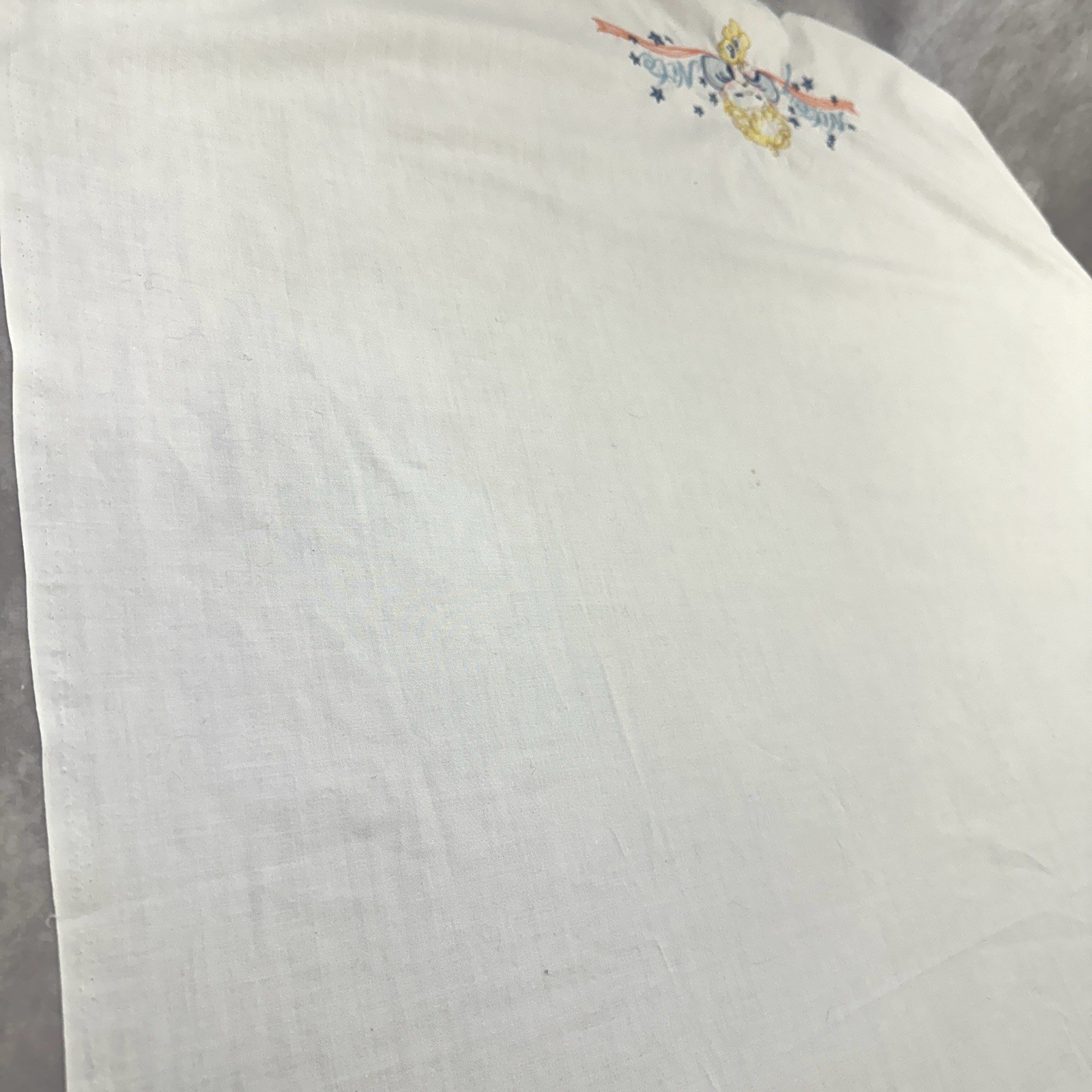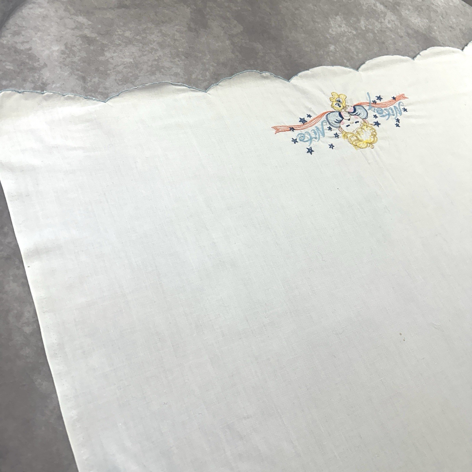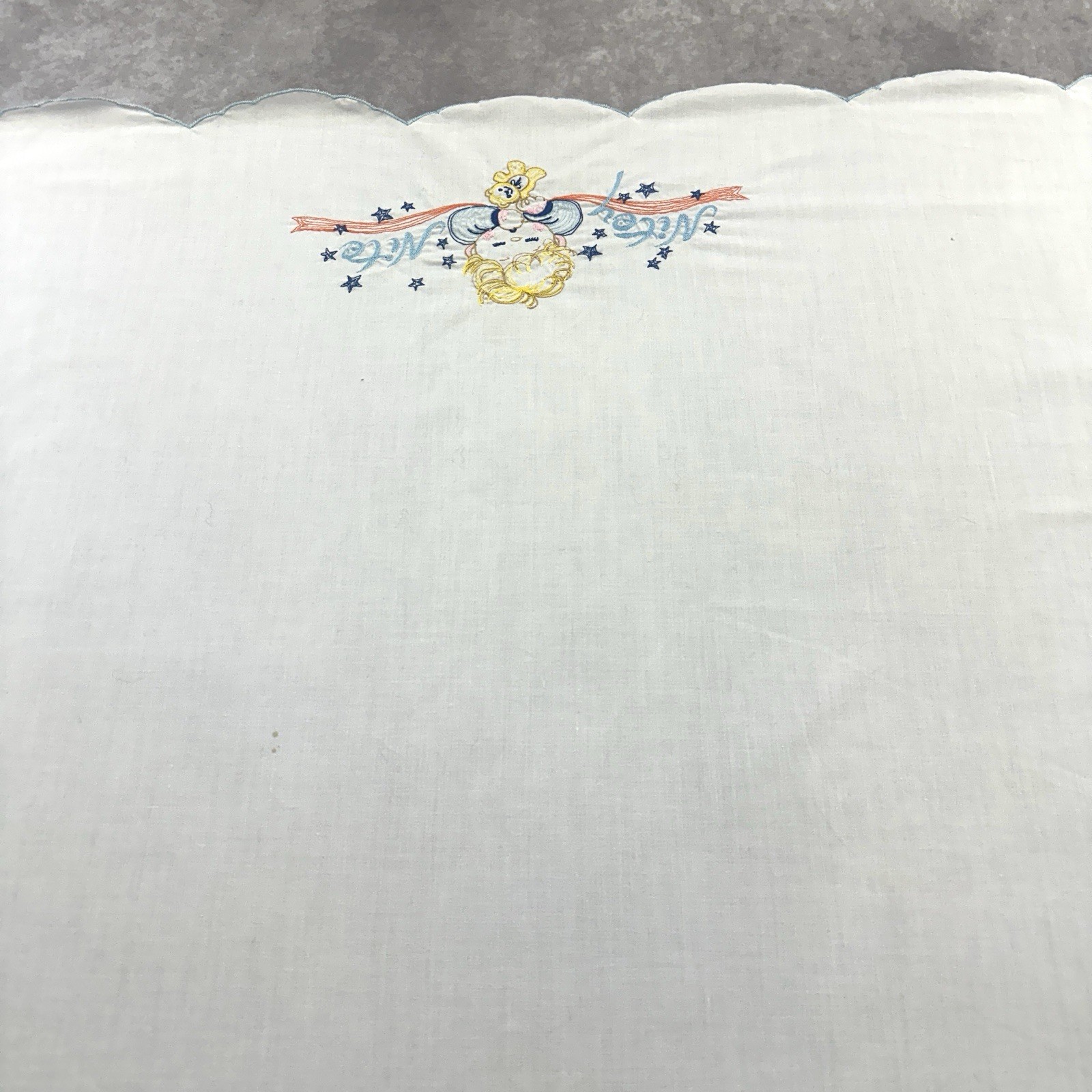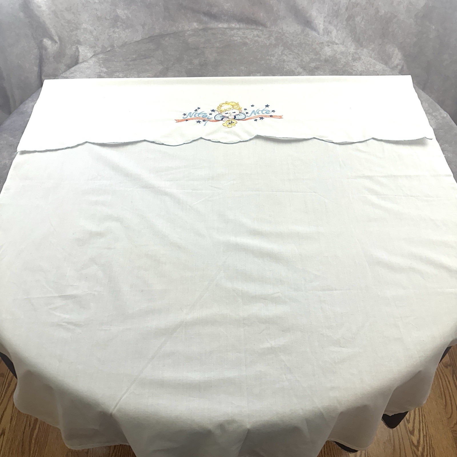 Vintage Infant Crib Flat Sheet Embroidered Nitey Nite Baby Blonde Nursery 36x45