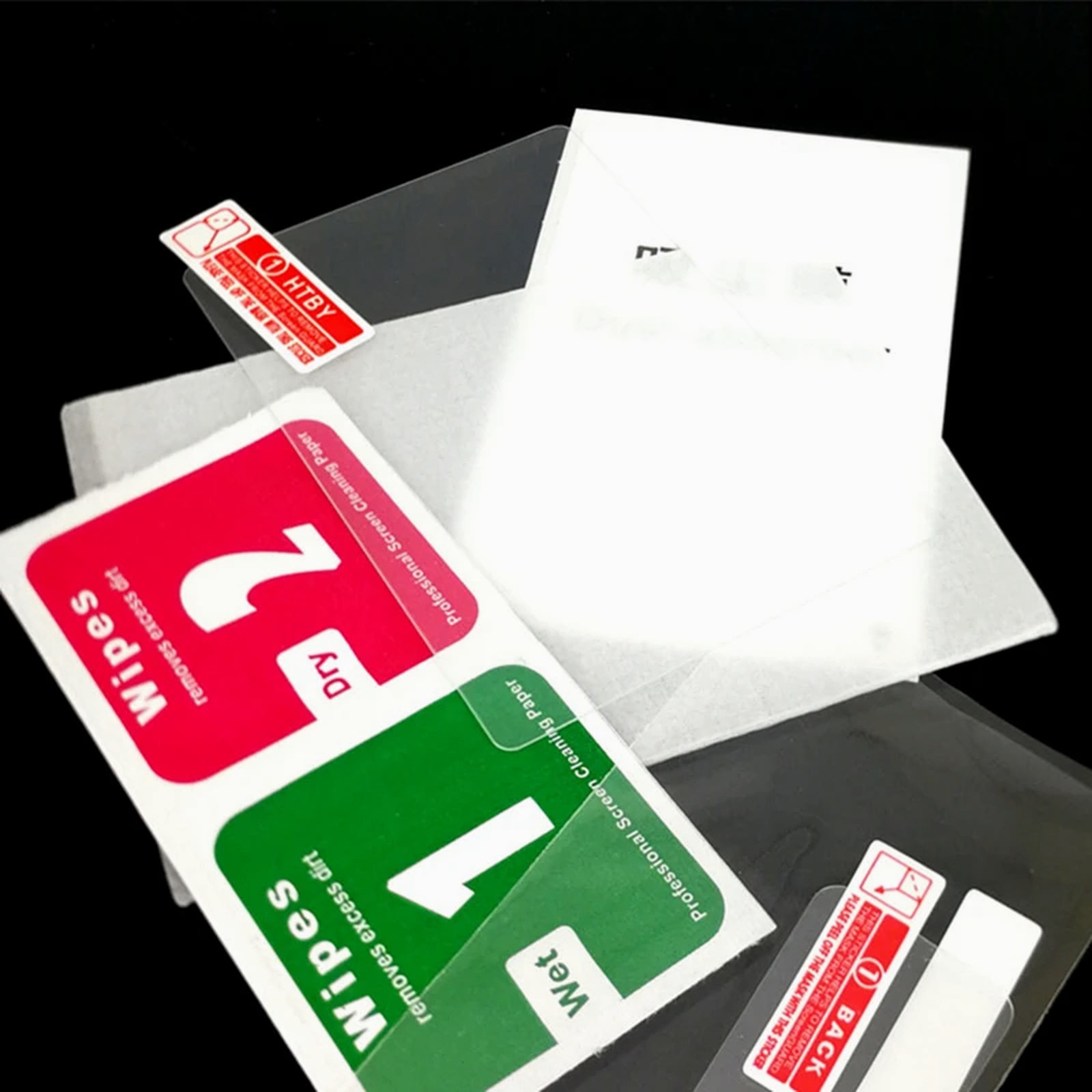 Items Included: Glass protectors for Big/Small LCD; PET Film; Wipes; Dust absorbe