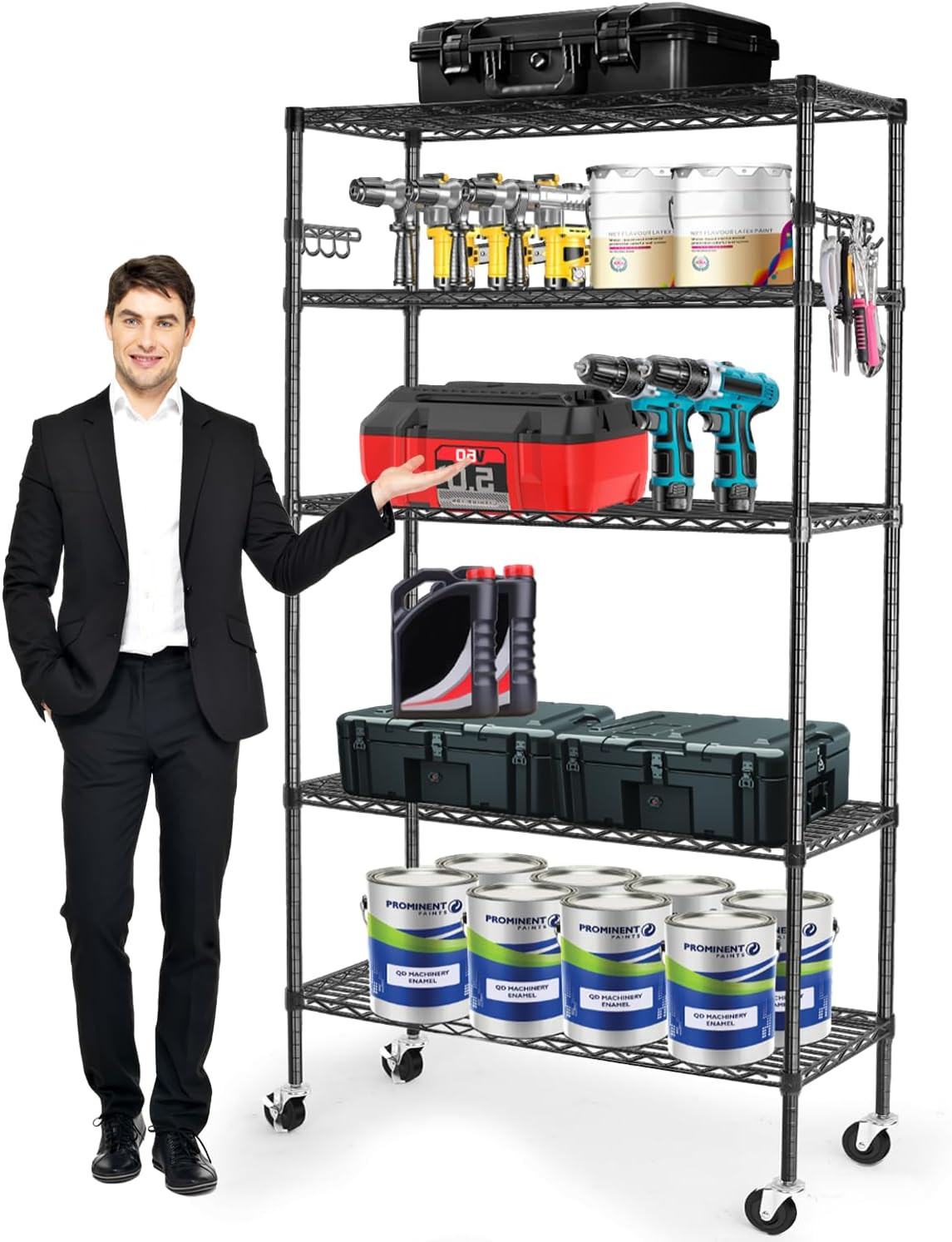 Storage Shelves,1750Lbs 5 Tier Heavy Duty Metal Rolling Shelving Unit with Wheel