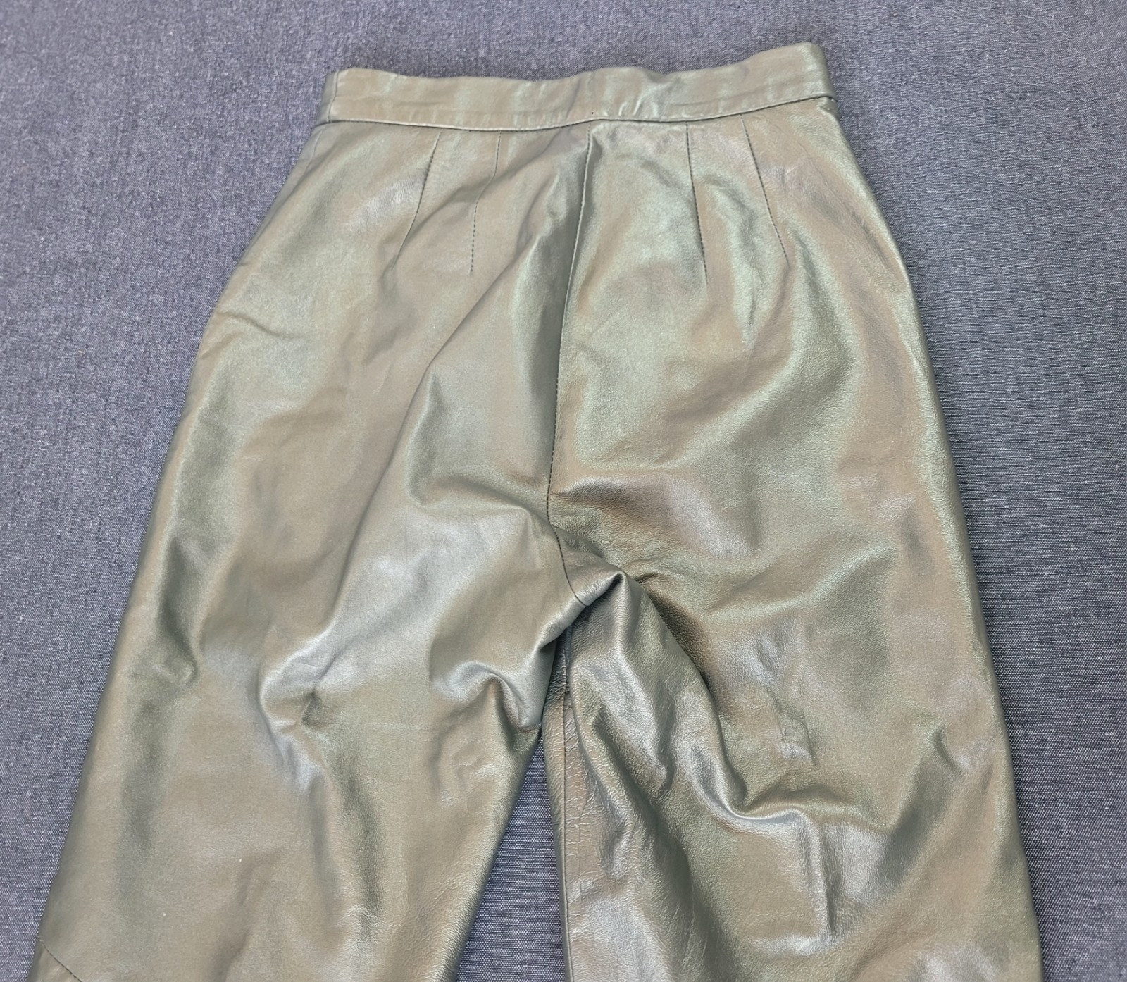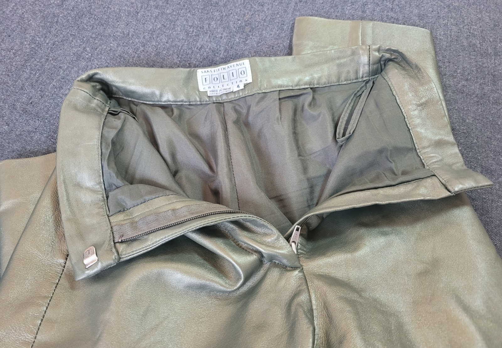 Vintage 70s 80s Saks Fifth Avenue Folio Dark Green Metallic Leather Pants XS