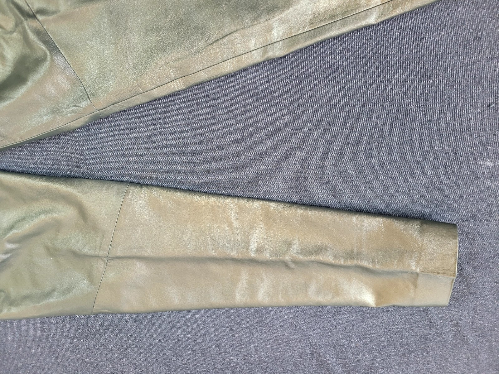 как выглядит Vintage 70s 80s Saks Fifth Avenue Folio Dark Green Metallic Leather Pants XS фото