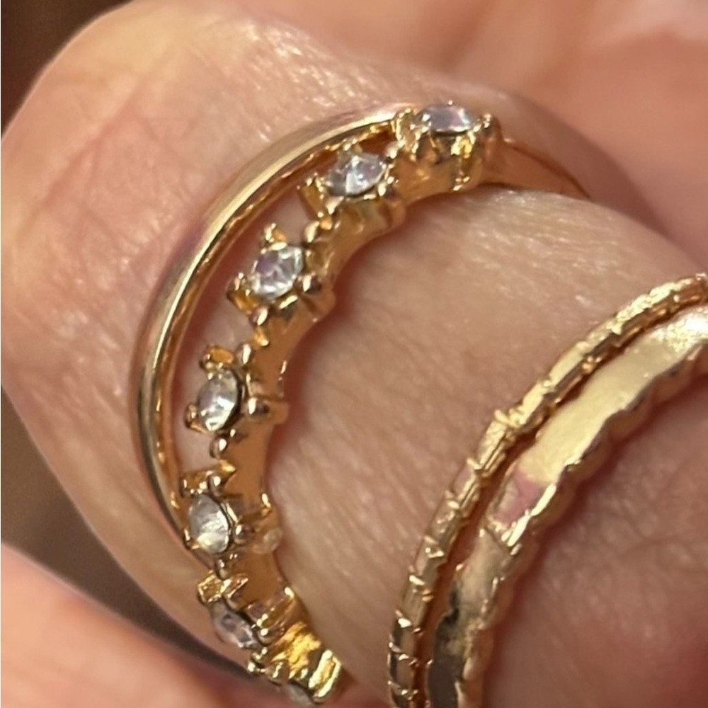 как выглядит Stackable Midi Rings Gold Tone Set Rhinestone Band Ring Stacking Set фото