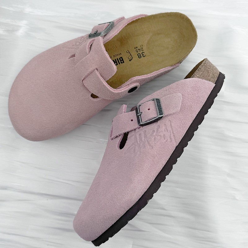 Birkenstock Boston x Stussy Pink Suede Leather Unisex Clog Shoes Wide Size