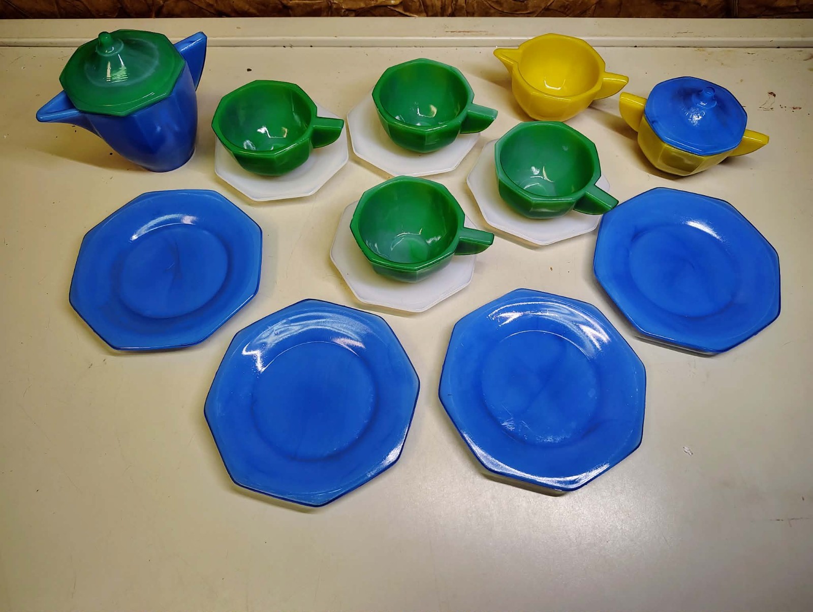 Vintage Akro Agate Company 1940's American Maid Tea Set in Original Box 17 Piece