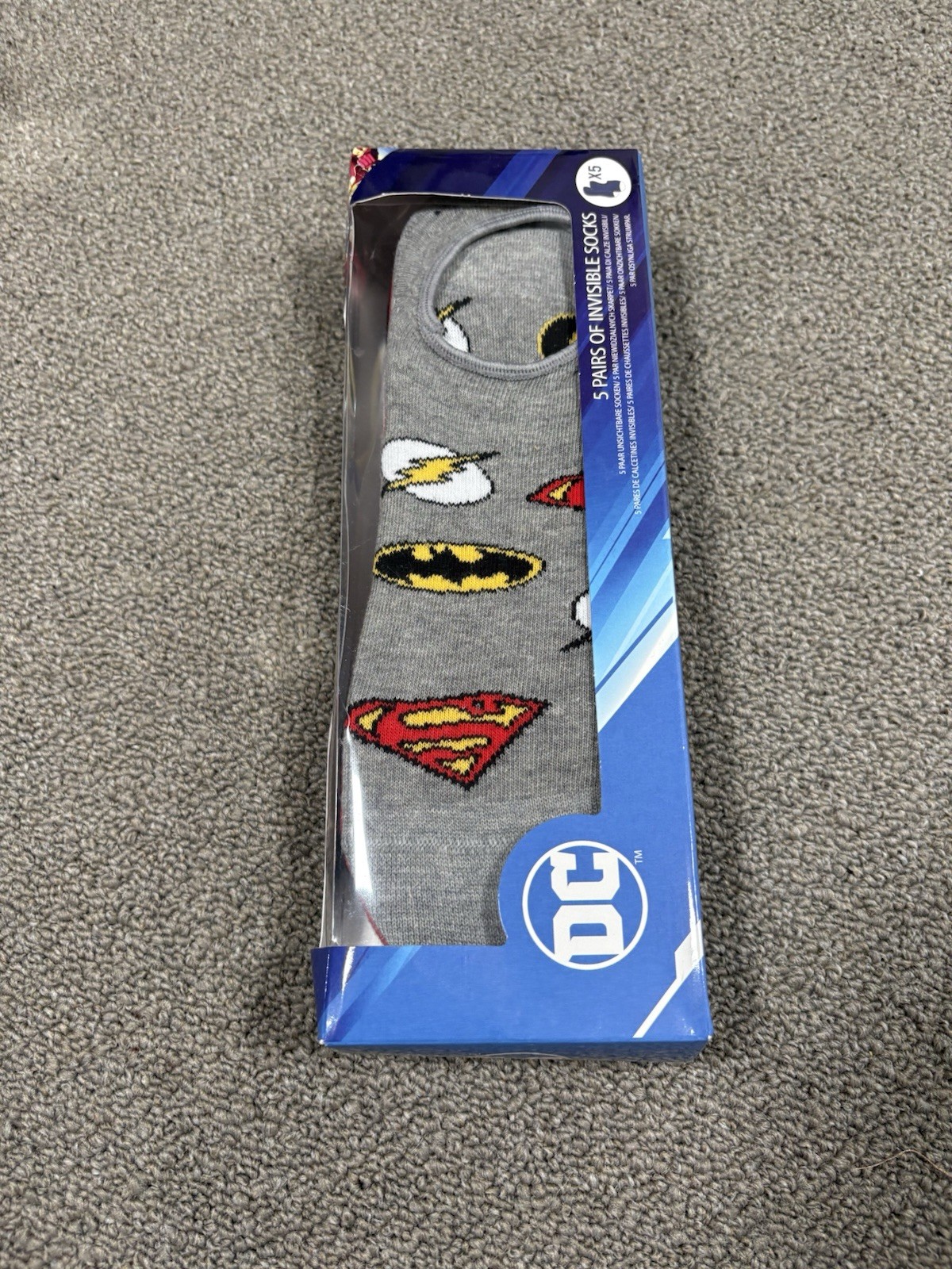 Dc Comic No Show Socks 5 Pack New In Box Damaged Box Assorted Design Sz 6-9.5