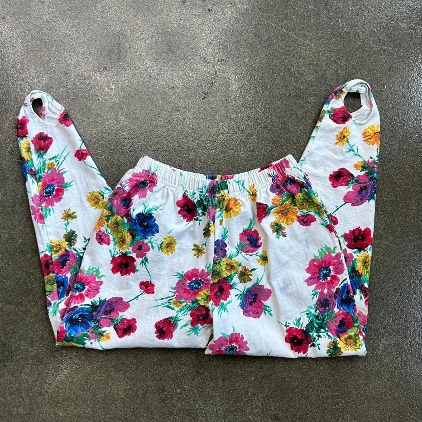 Vintage 90s Retro Style White Floral Pattern Colorful Women's Pants Size Small