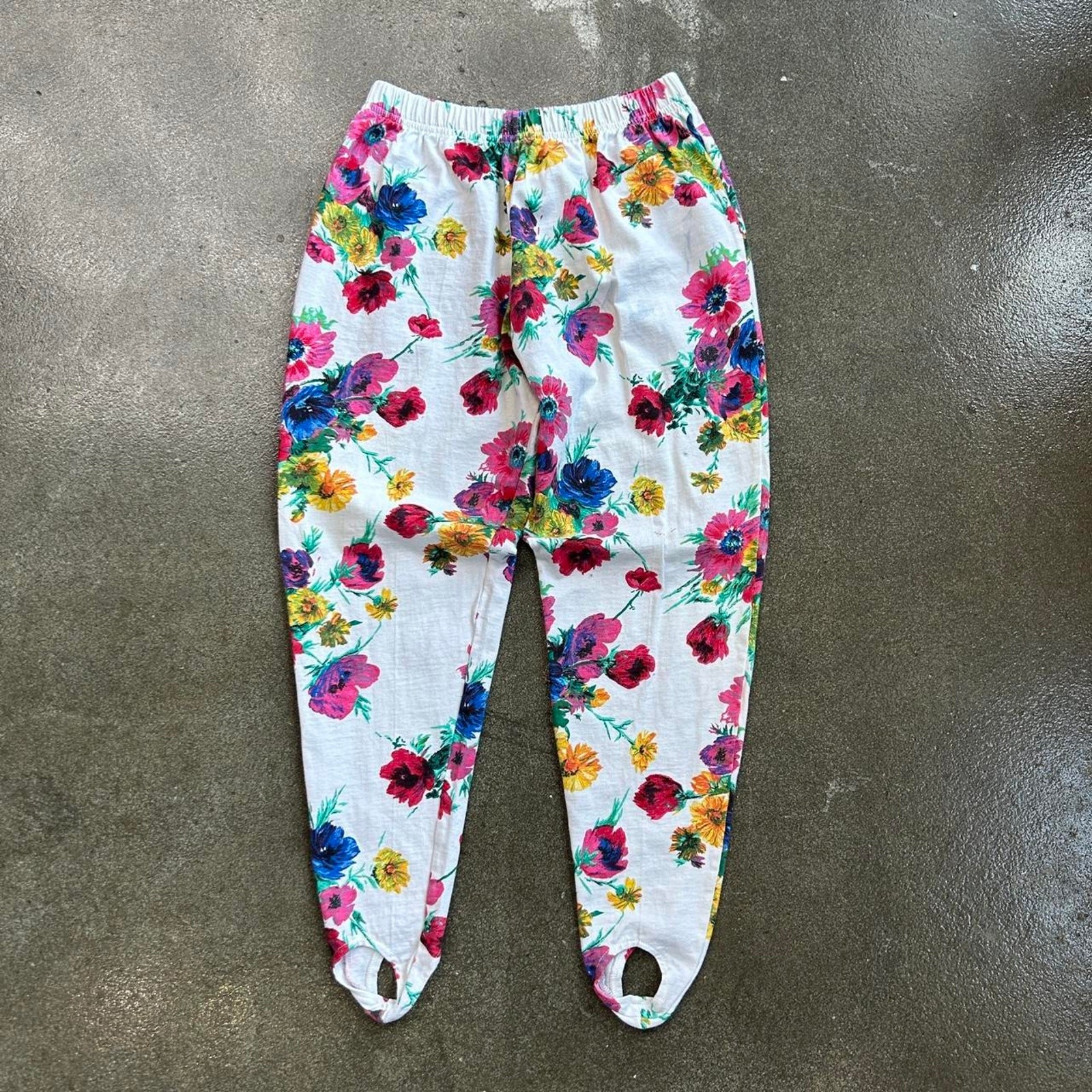 как выглядит Vintage 90s Retro Style White Floral Pattern Colorful Womens Pants Size Small фото