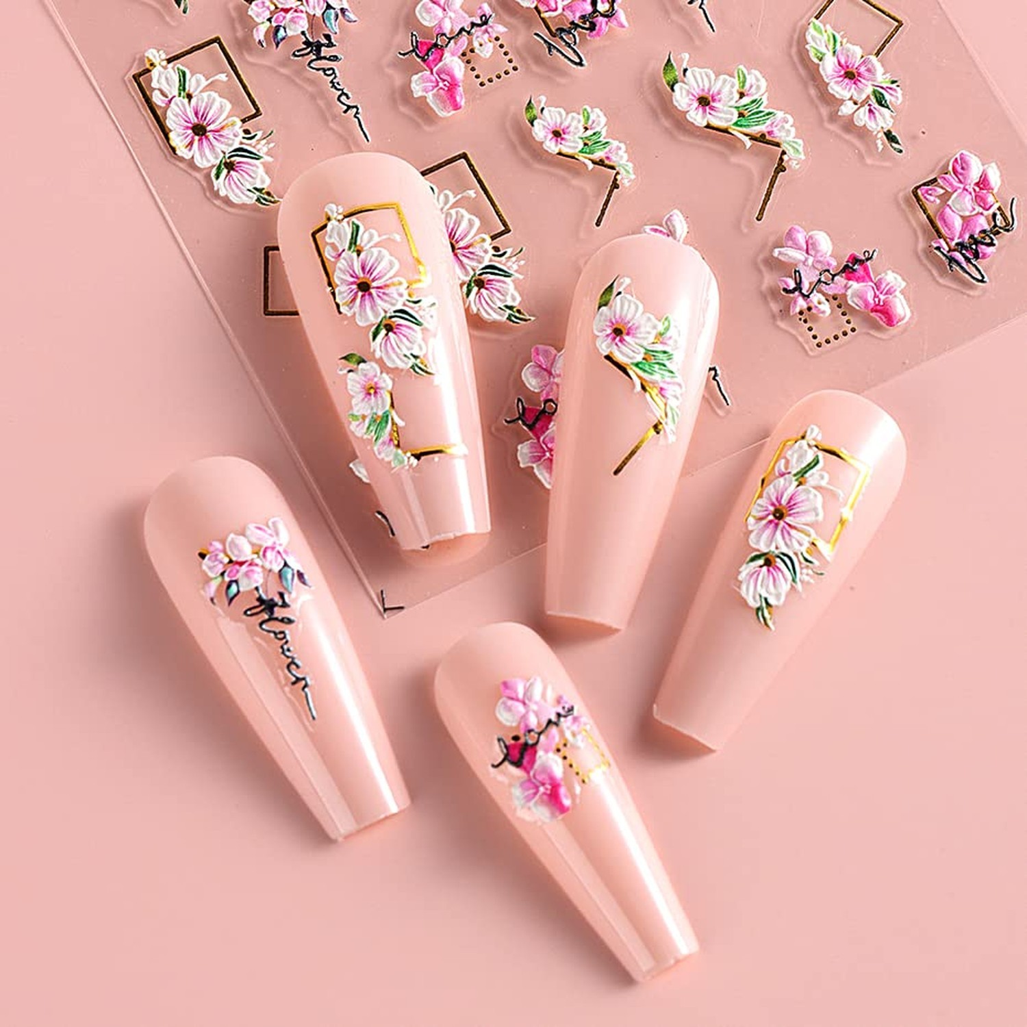 3D Embossed Flower Leaves Nail Art Stickers Decals 4 Sheets 5D Self-Adhesive ...