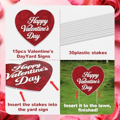 15 PCS Valentine's Day Decorations Valentine's Day Yard Signs, Valentines Love