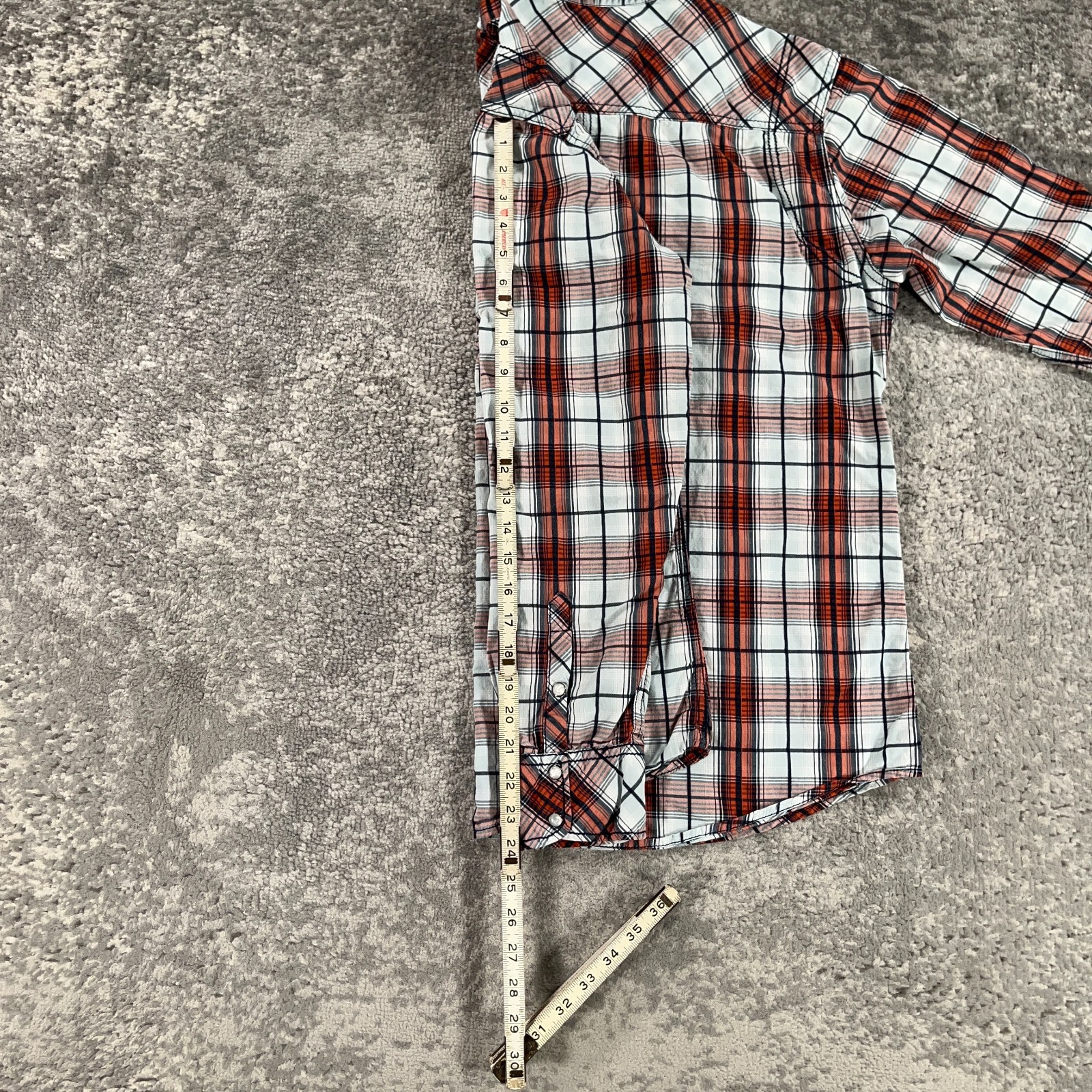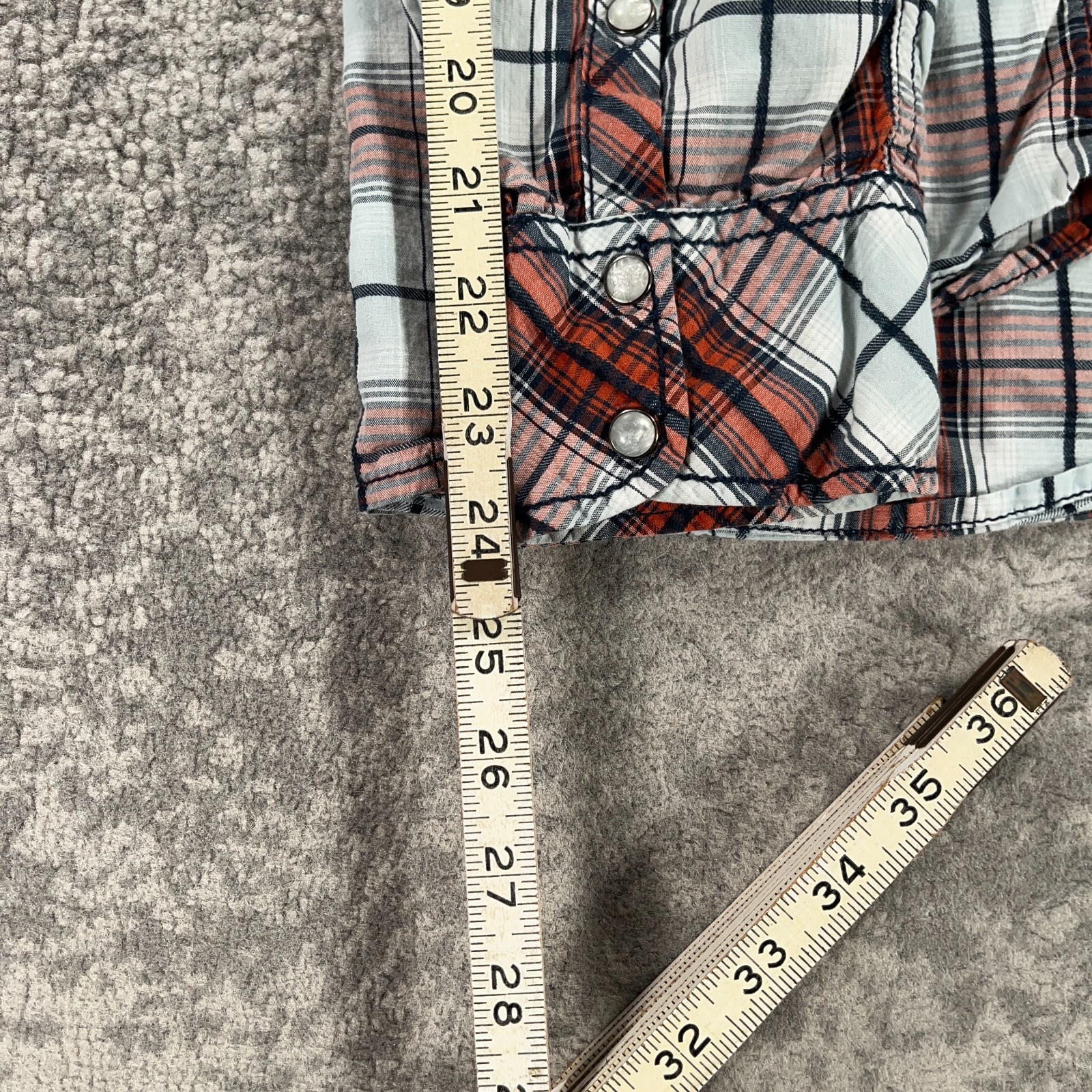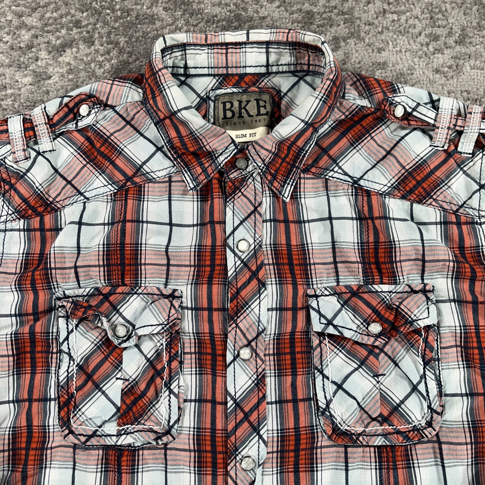 как выглядит Buckle BKE Western Shirt Mens Large Slim Fit Blue Orange Plaid Pearl Snap Cowboy фото