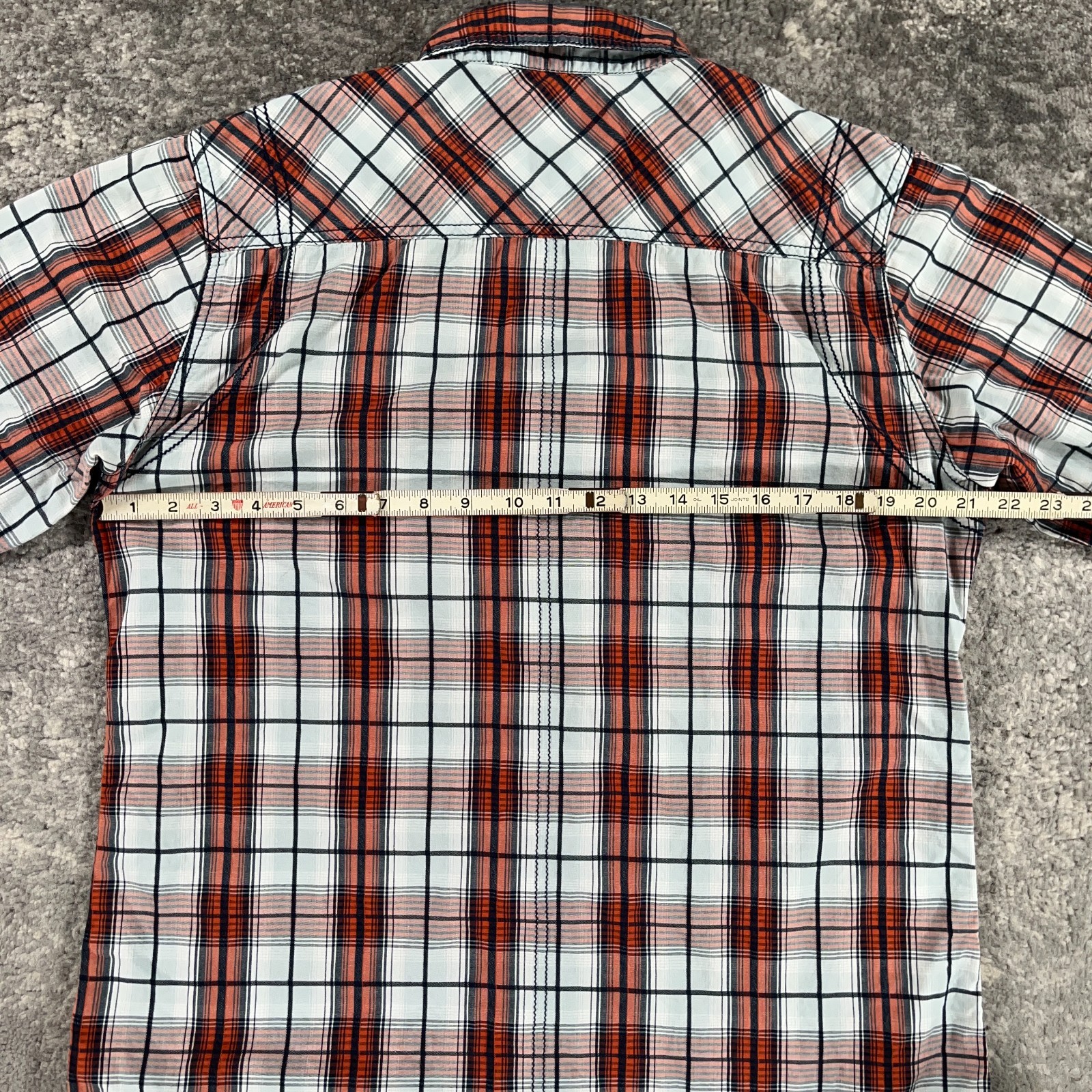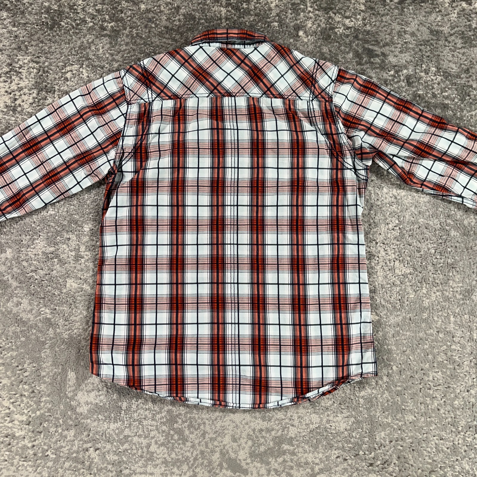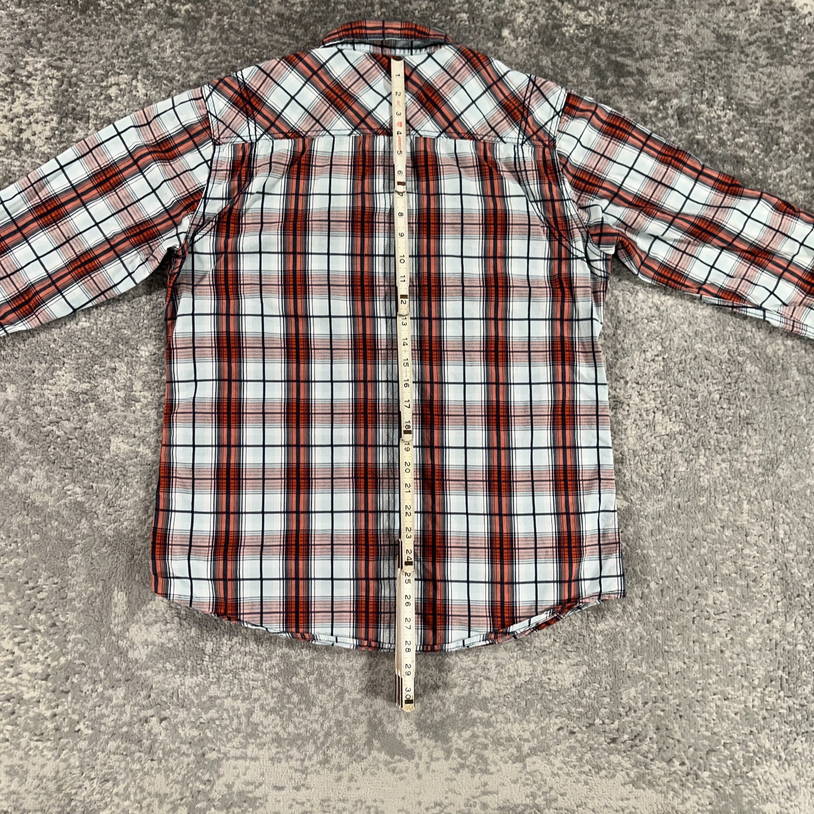 как выглядит Buckle BKE Western Shirt Mens Large Slim Fit Blue Orange Plaid Pearl Snap Cowboy фото
