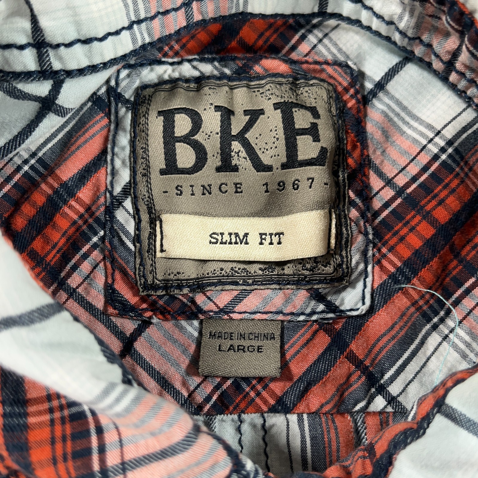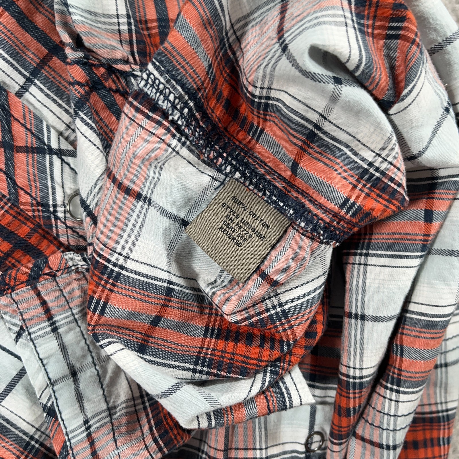 Buckle BKE Western Shirt Mens Large Slim Fit Blue Orange Plaid Pearl Snap Cowboy