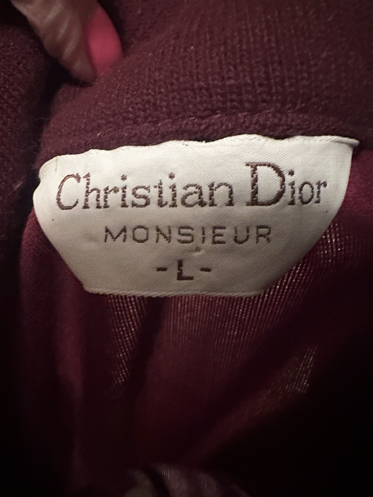 как выглядит Vintage Christian Dior Monsieur Velour Track Jacket L Burgundy Zip Up 80s 90s фото