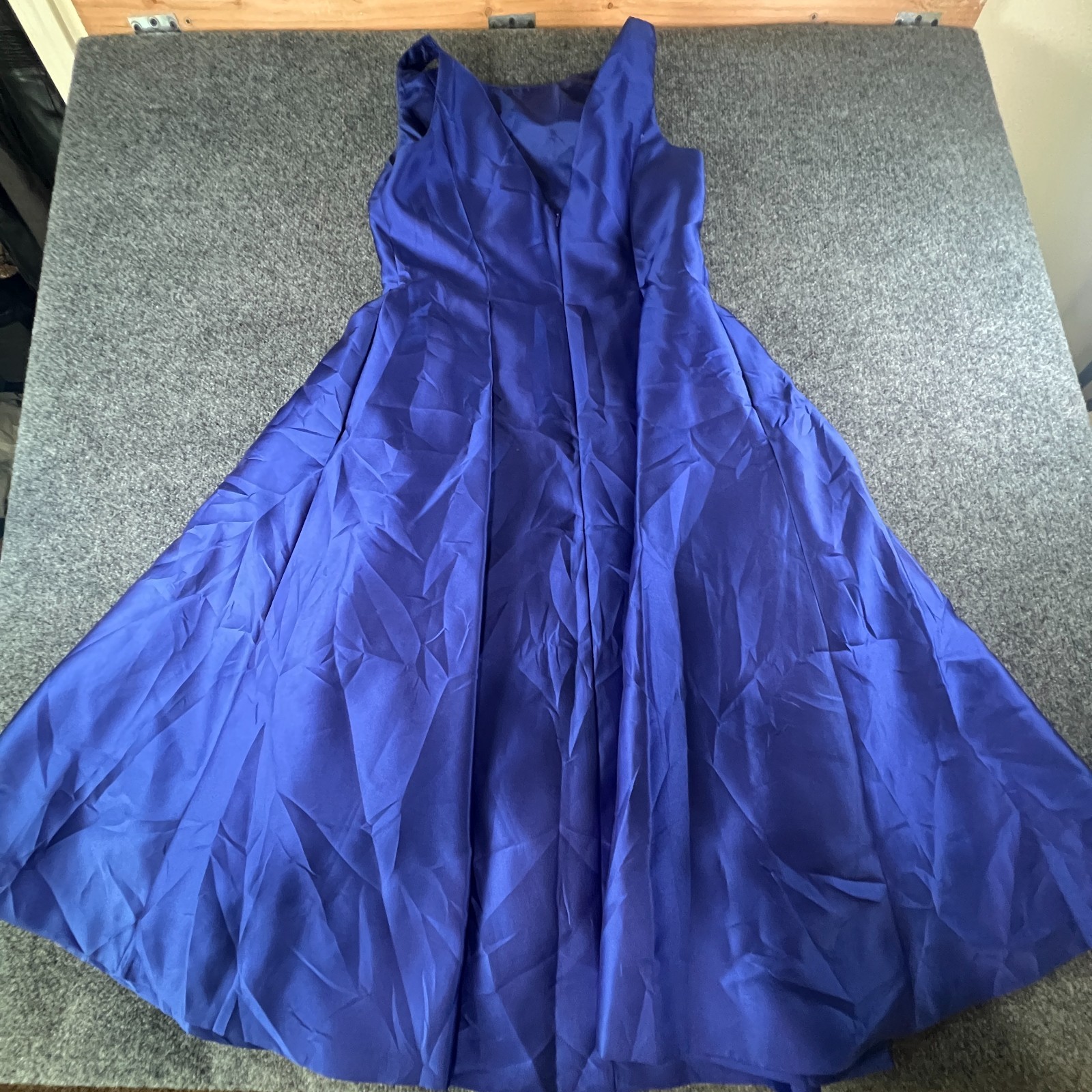 как выглядит Adrianna Papell Mikado Evening Gown Dress Womens 10 Blue Pleated Front Back Zip фото