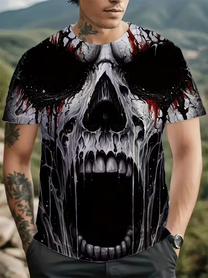 Grim Skull Face Gothic 3D All Over Print T-shirt