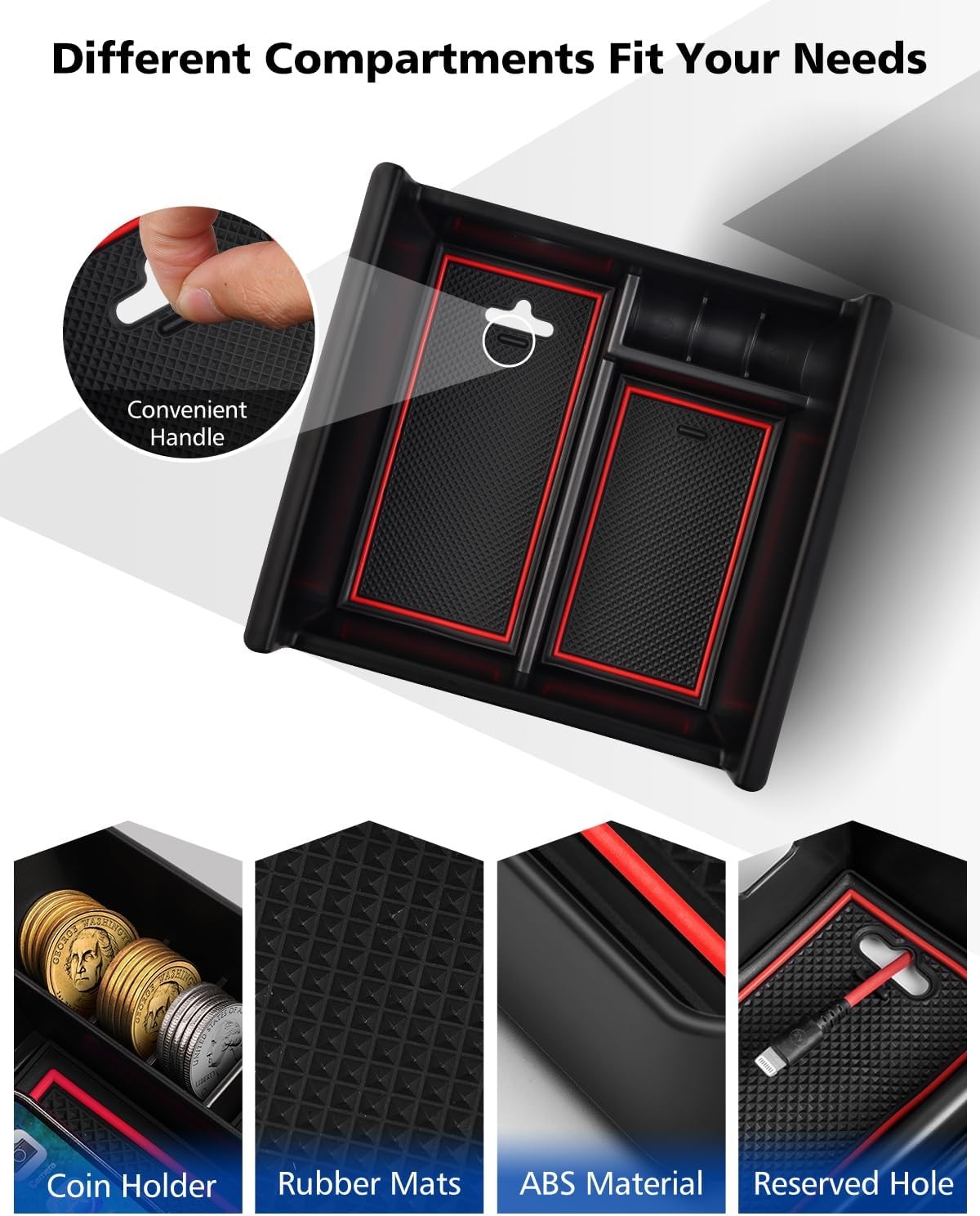 • Center Console Organizer for 2020-2025, Armrest Storage Box ABS Console Insert T