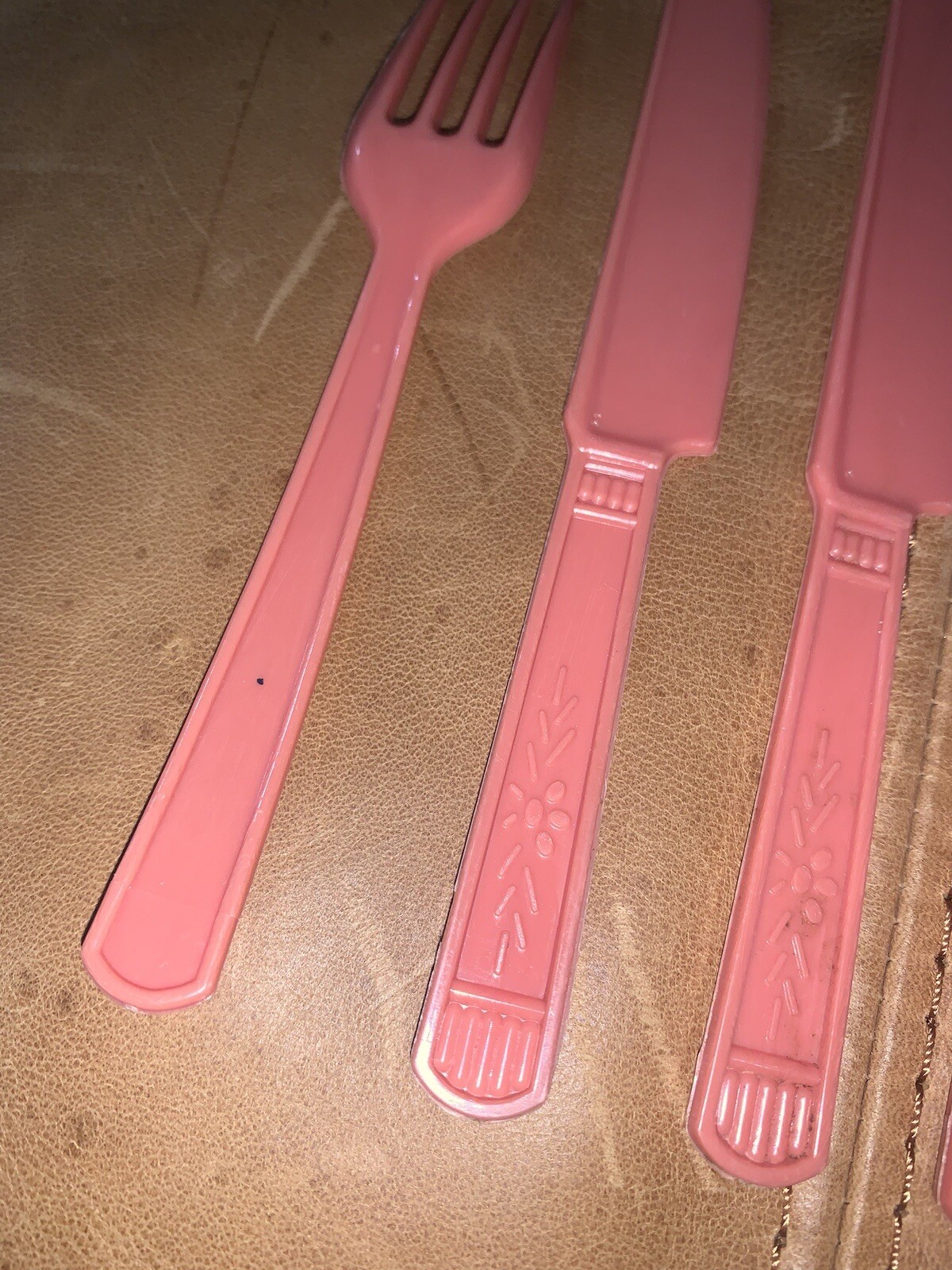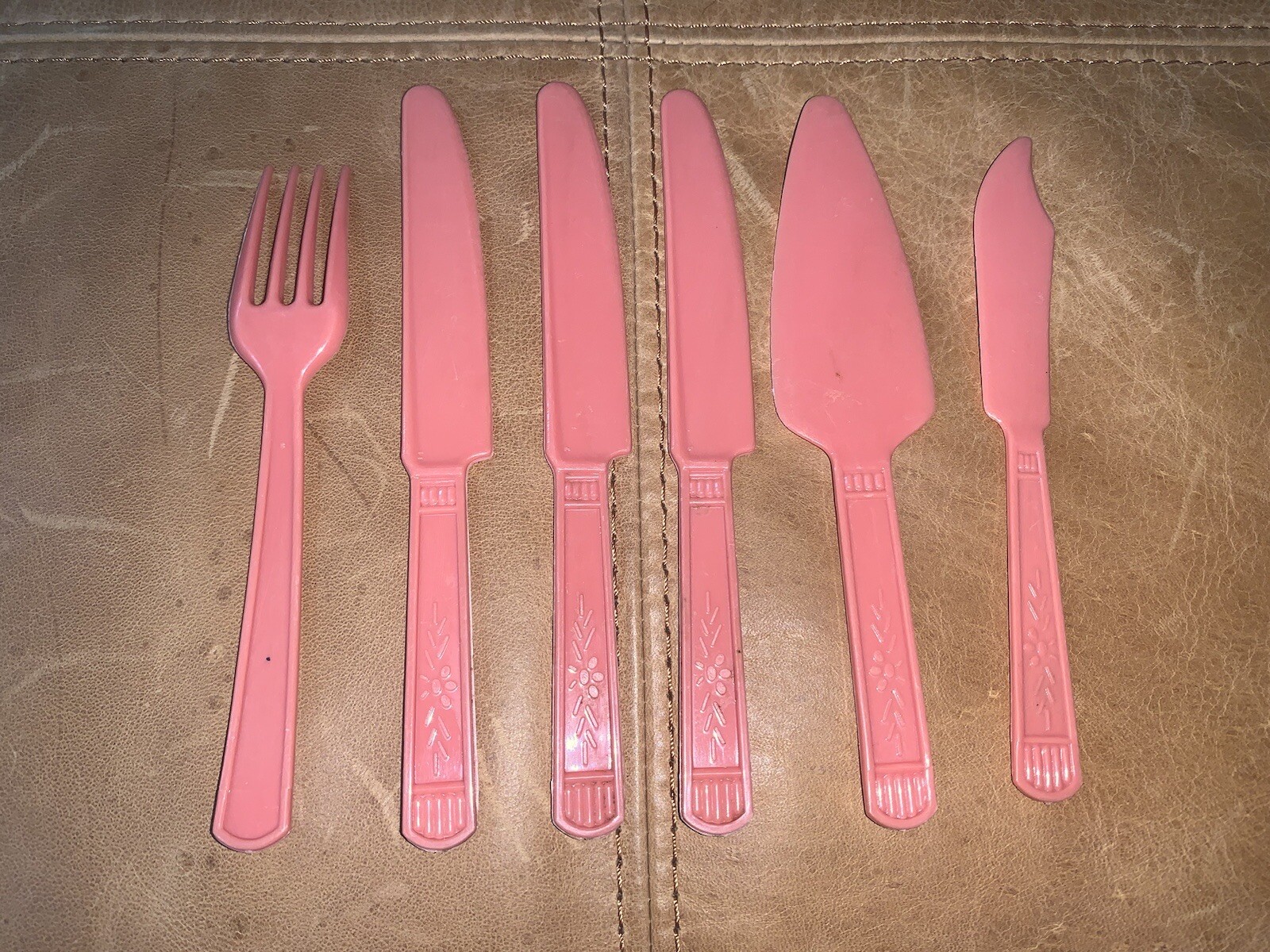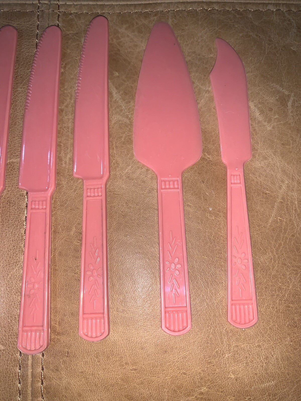 Plastic Cutlery Pretend Play Fork Knives Cake Server Peach Pink Lot of 6