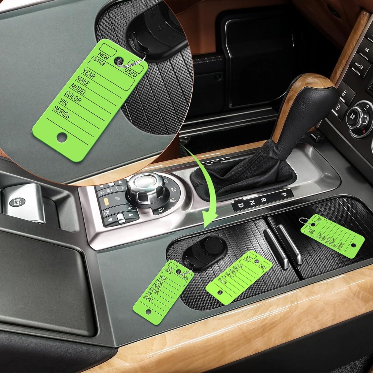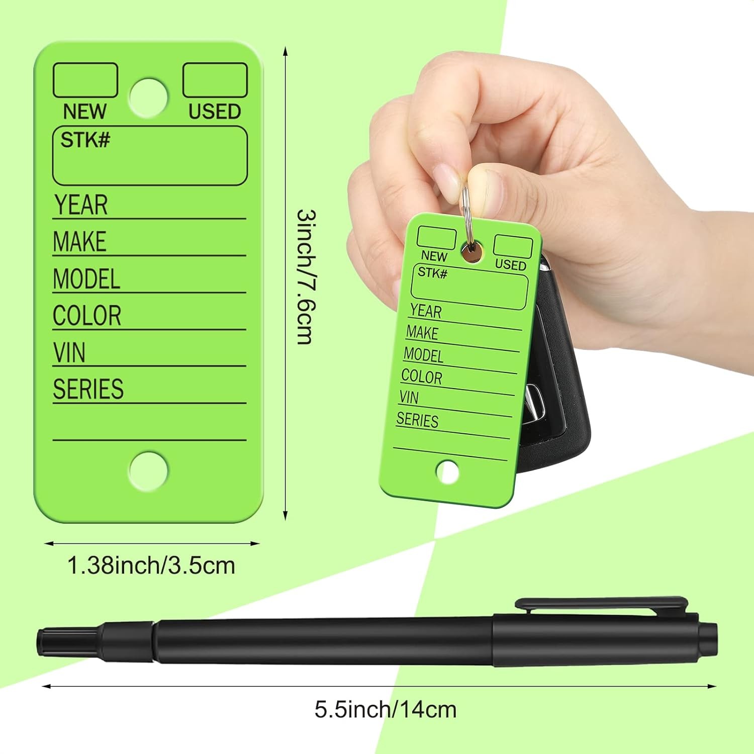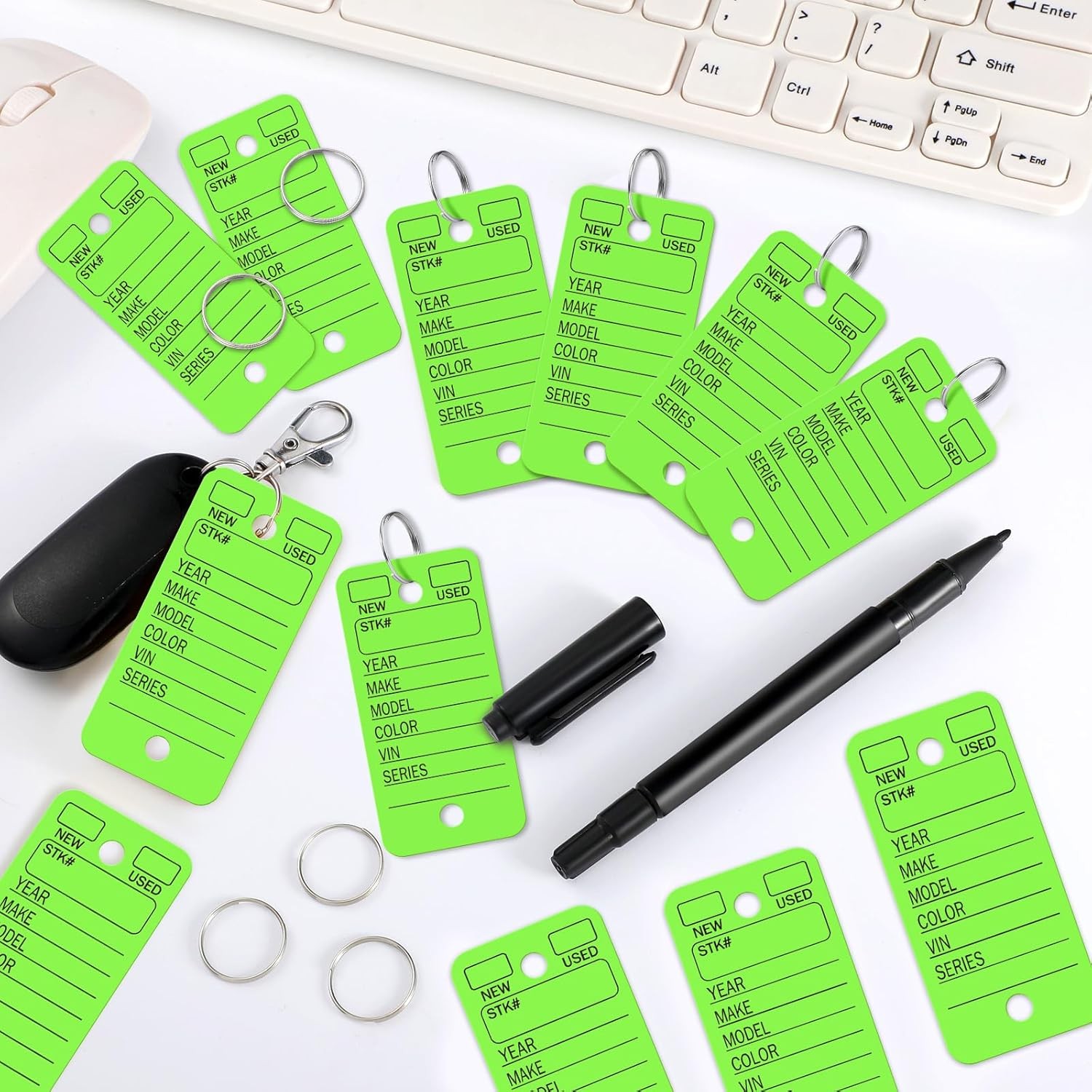 200 Pcs Poly Car Key Tags with 200 Pcs Rings and 2 Markers, Plastic Key Ring Tag