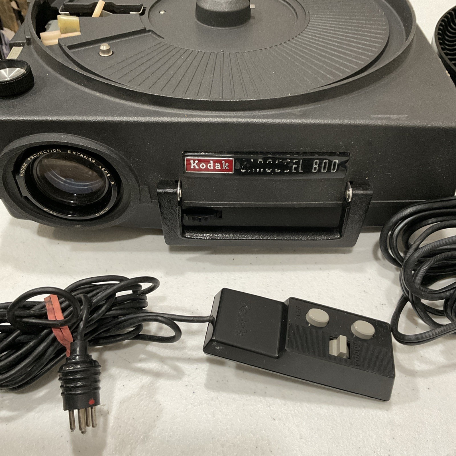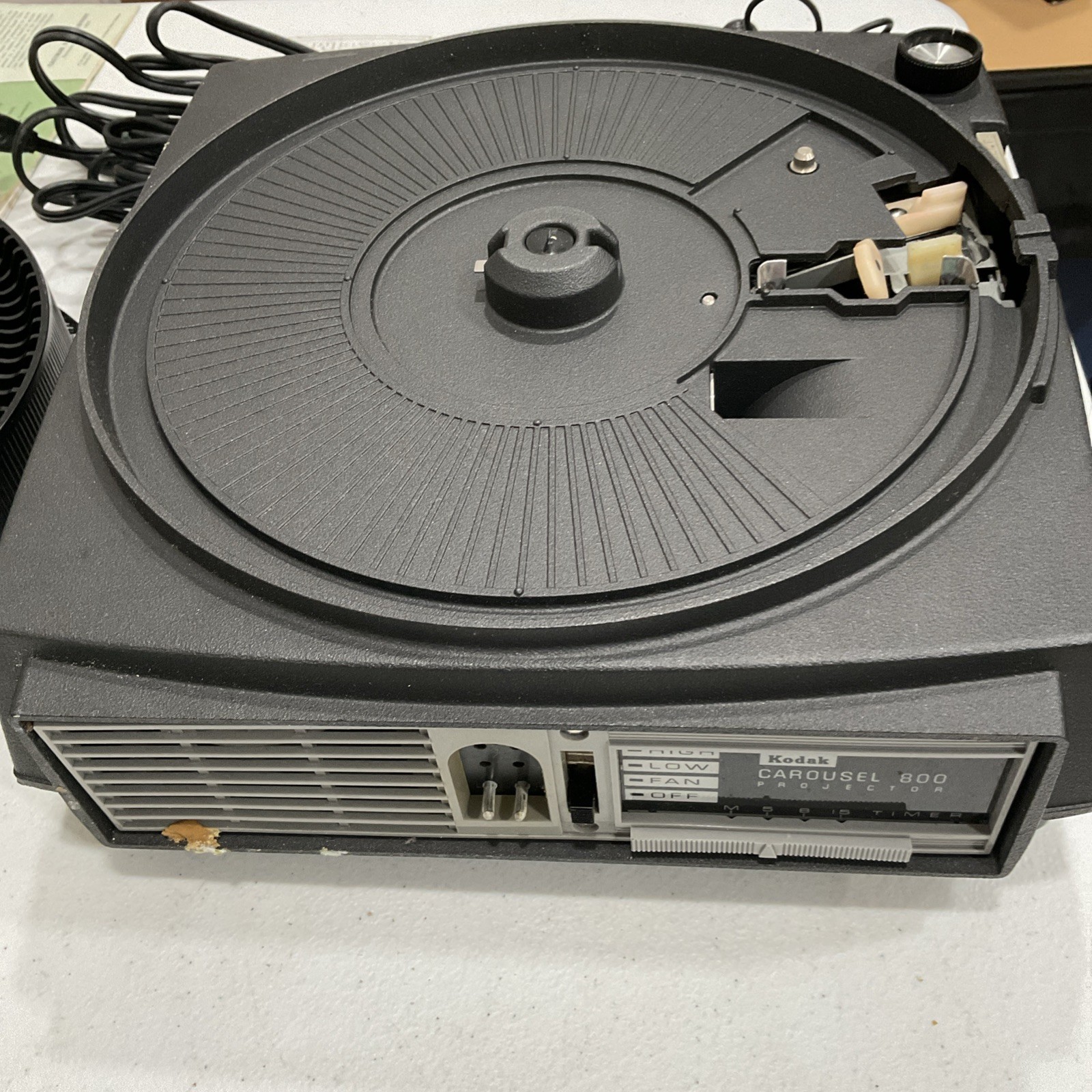 KODAK CAROUSEL 800 SLIDE PROJECTOR W/ BOX, MANUAL, REMOTE, SLIDE TRAY UNTESTED