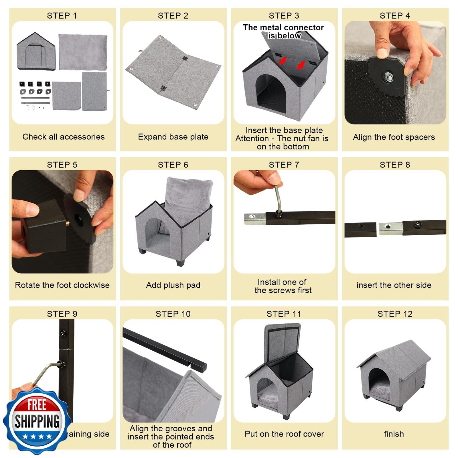 как выглядит Indoor Dog House, Elevated Foldable Dog Cave Bed with Removable P фото