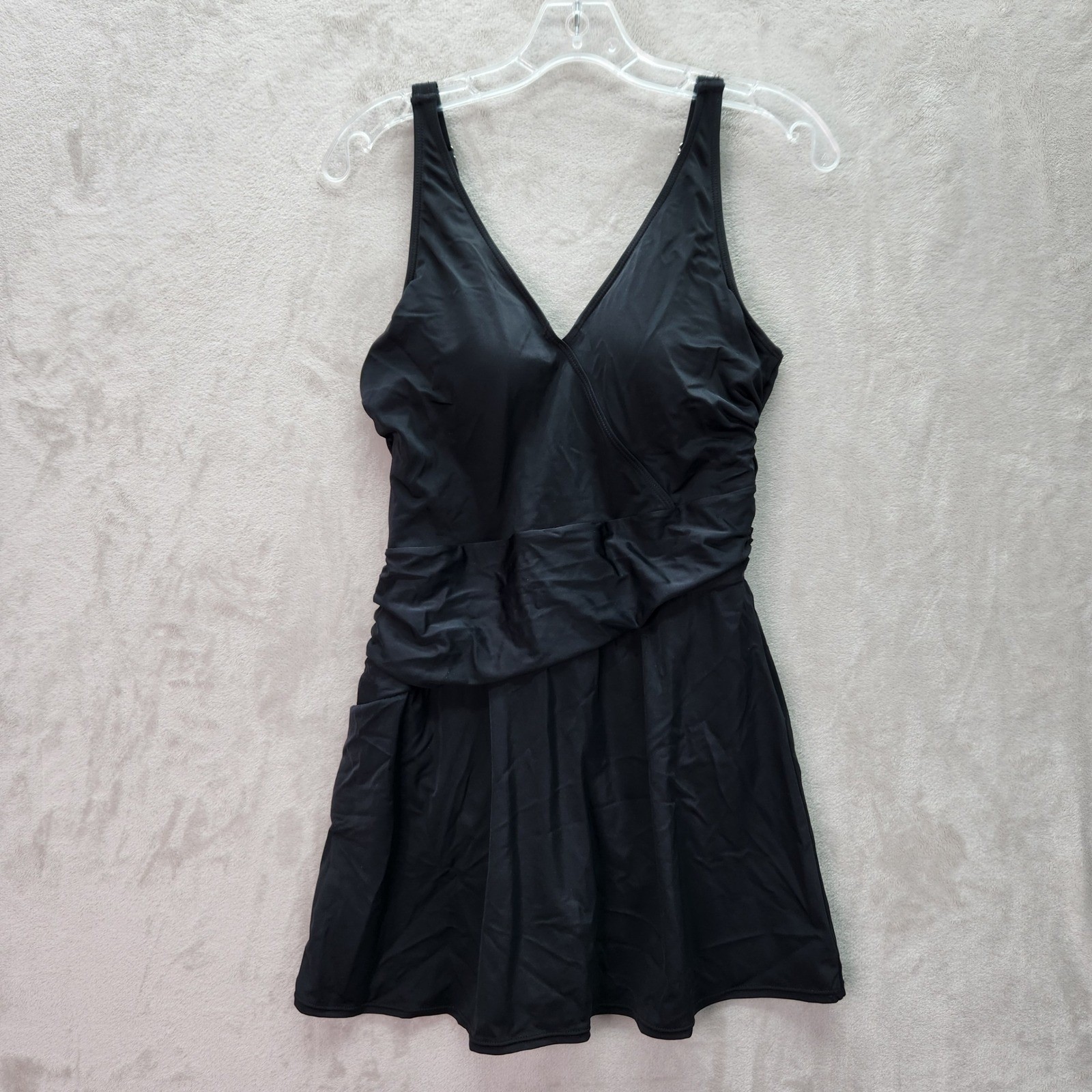 как выглядит Denim Co Beach Swimwear Plus 20W Black V-Neck Ruched Waist Swim Dress A634757 фото