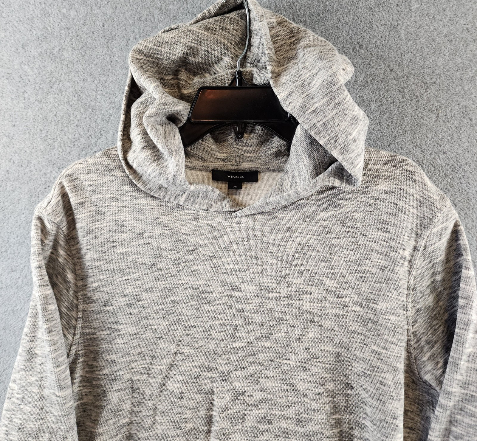 как выглядит Vince Double Knit Hoodie Mens L Black/Off White Heather Long Sleeve Pullover фото