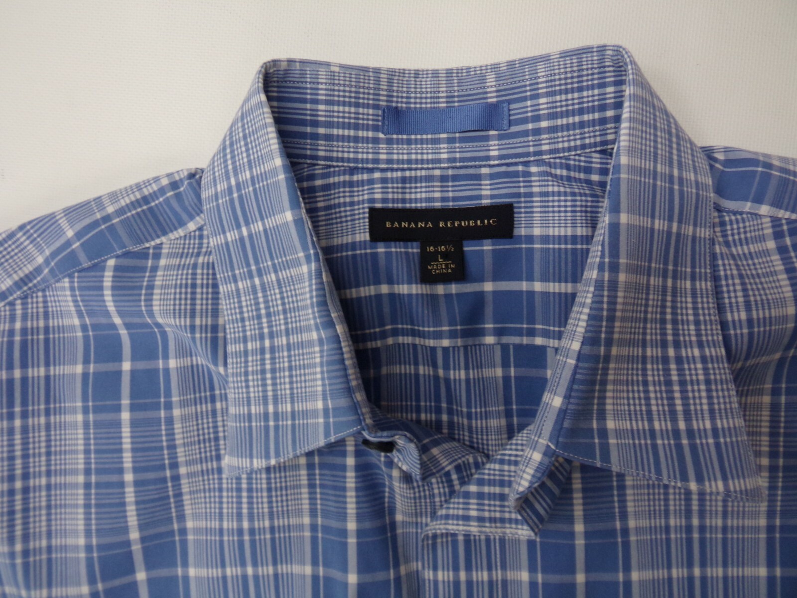 как выглядит BANANA REPUBLIC L 16-16.5 Shirt Plaid Blue/White S/S Mens фото