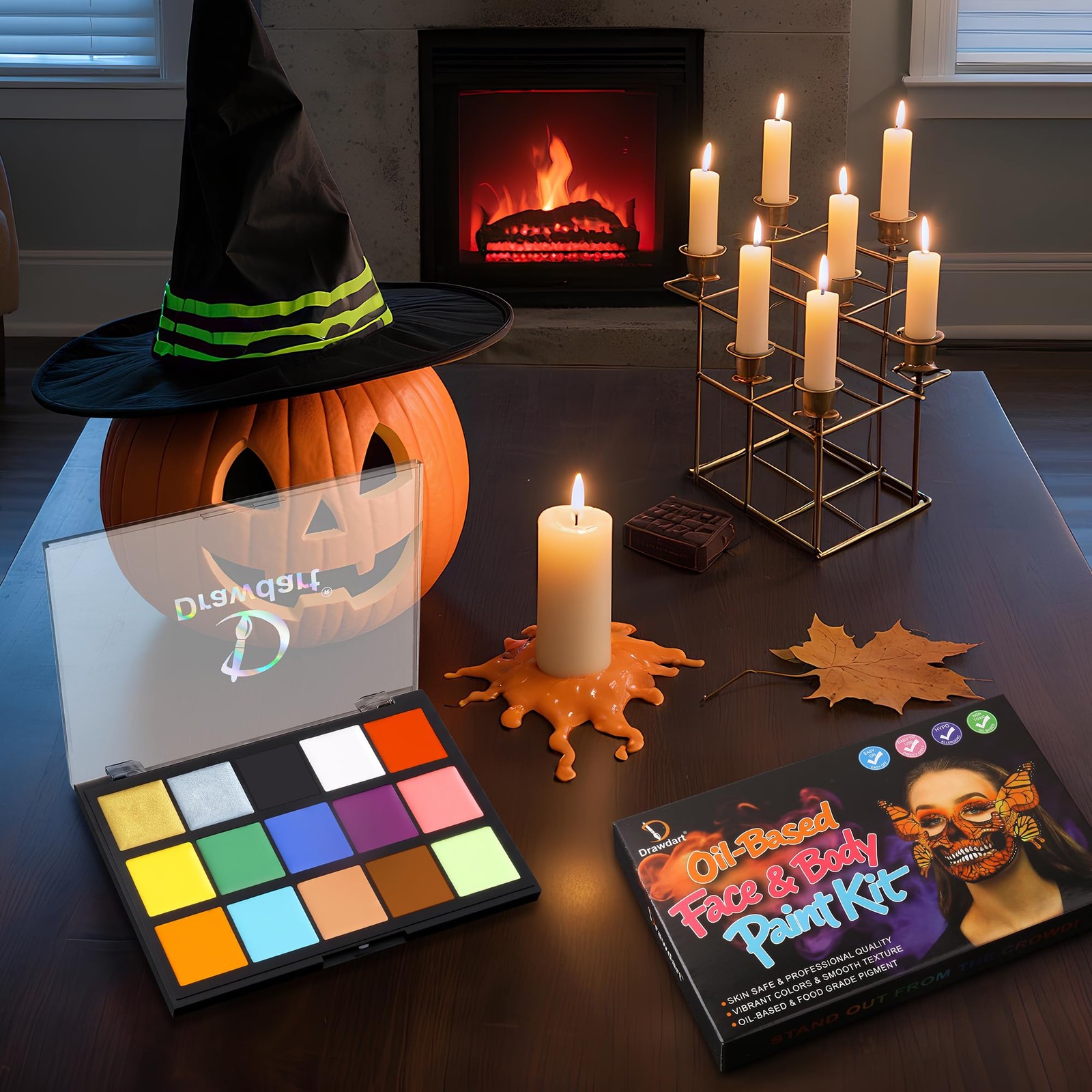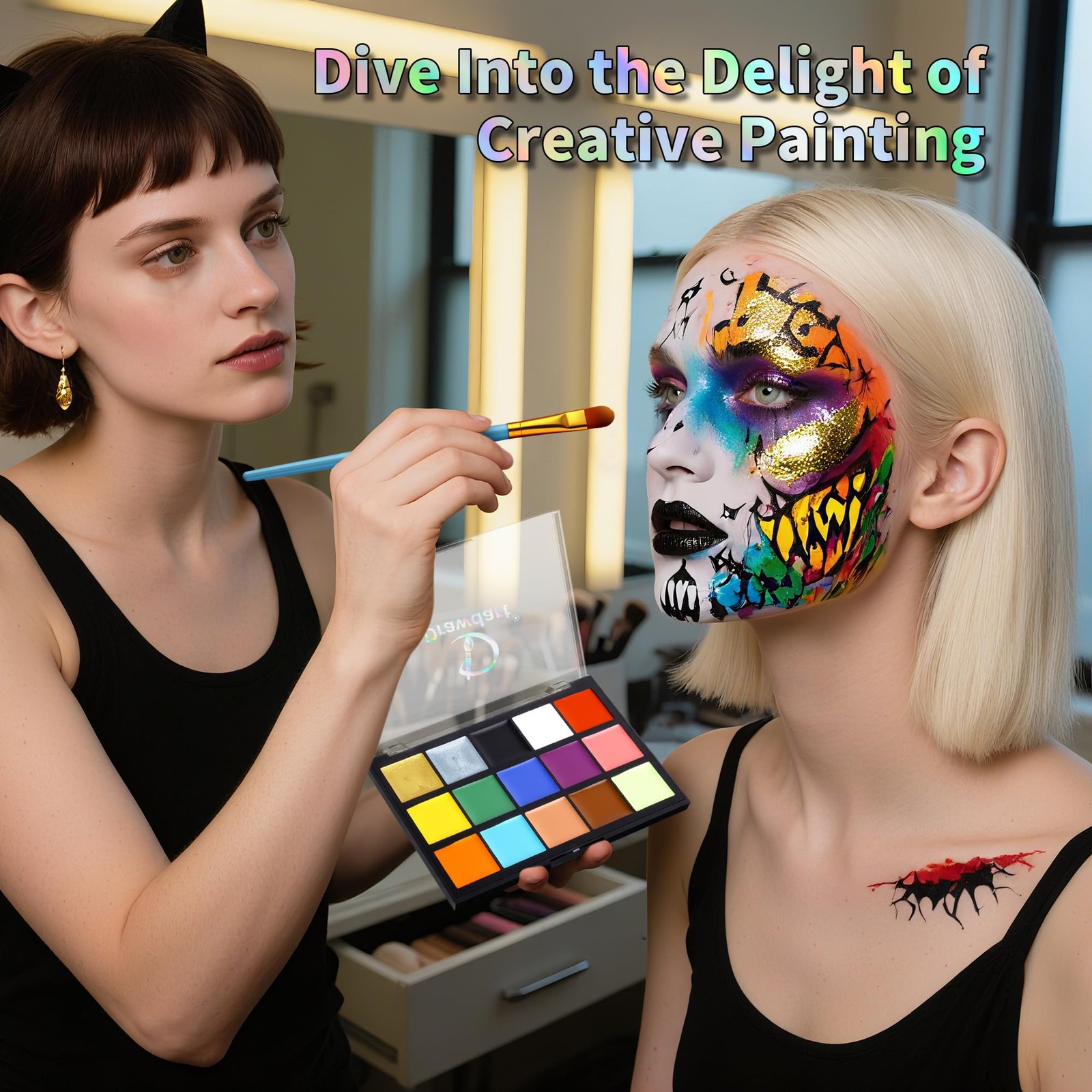 Face Body Paint Kit, 15 Colors Face Painting Palette with 10 Pcs Artist Brush...
