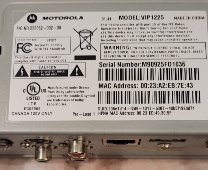 как выглядит AT T U-VERSE CABLE TV MOTOROLA BOX MODEL VIP1225 WITH REMOTE POWER CORD фото