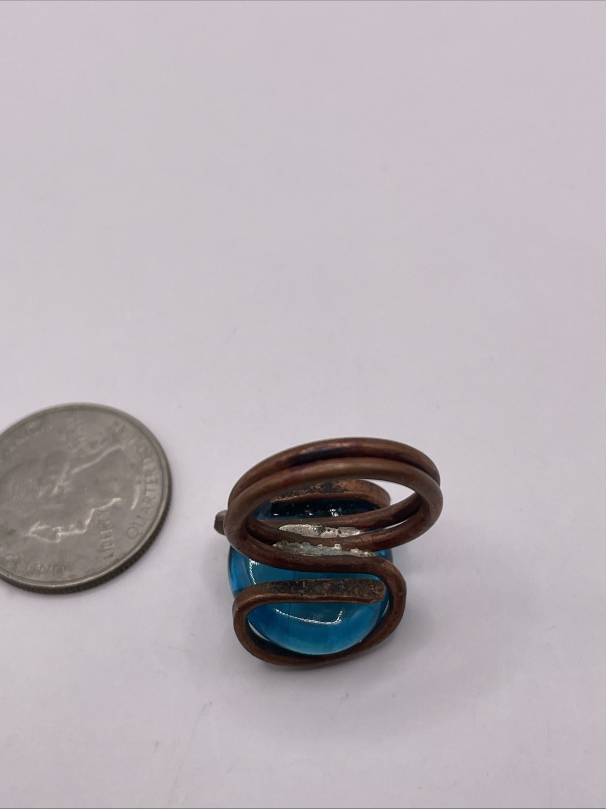 как выглядит Handmade COPPER Wire Wrapped RING with Glass BLUE Stone Size: 6.5 фото