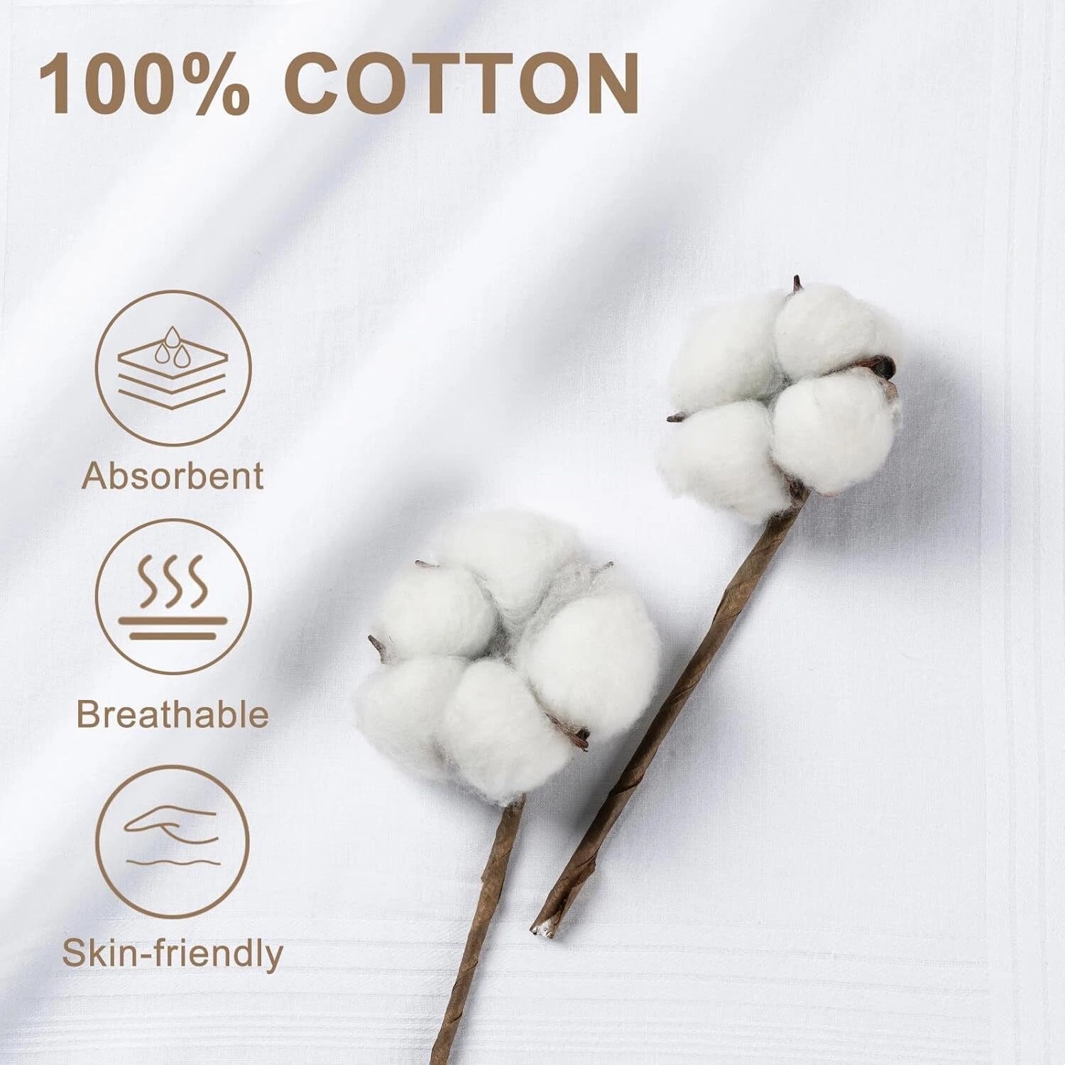 12 Handkerchiefs Men Hankies 16X16 inches 100 Cotton White Pocket Squares