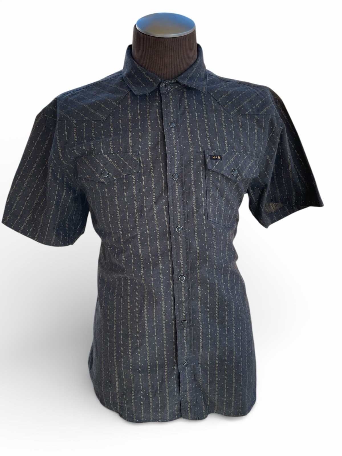 как выглядит Howler Bros Shirt Mens L Black / Gray Striped H Bar B Pearl Snap Lightning Bolt фото
