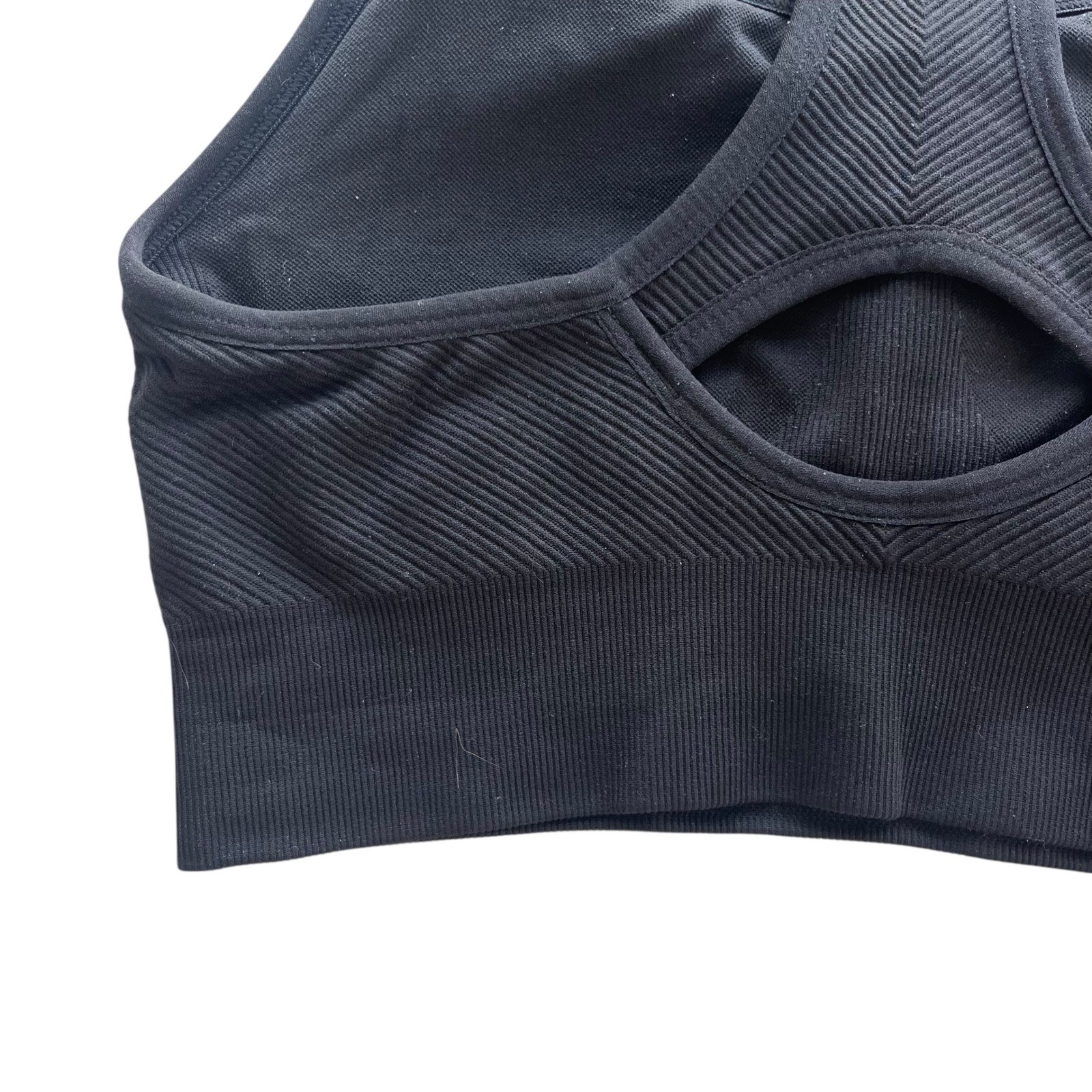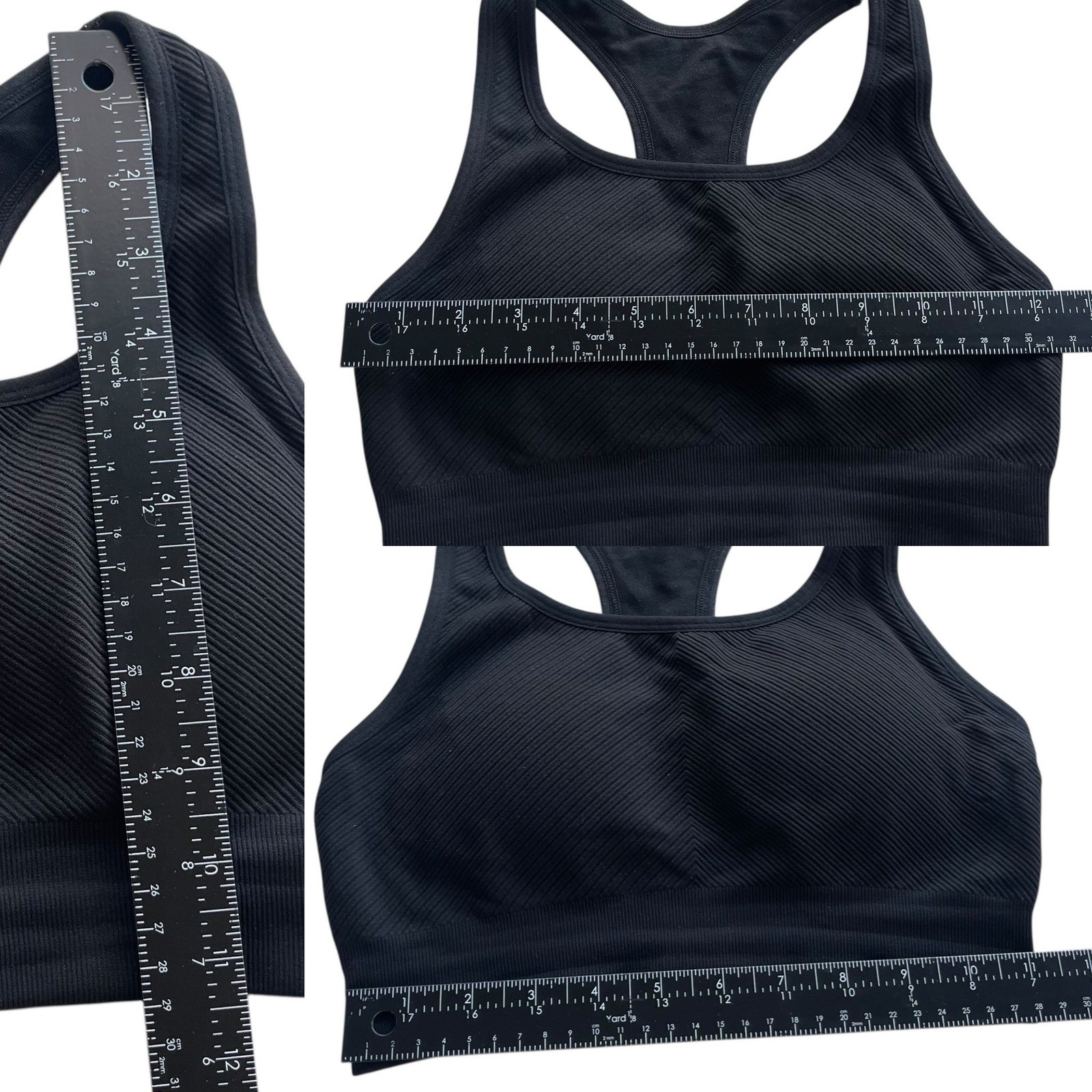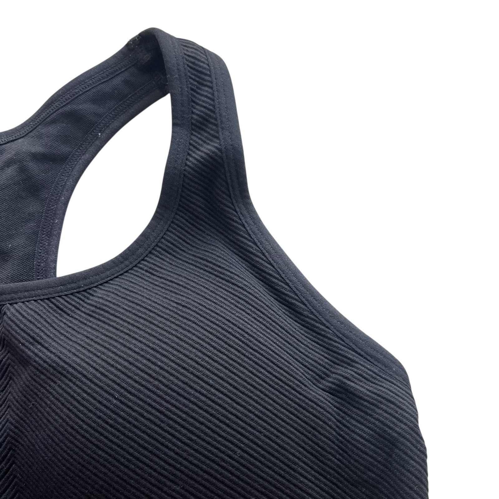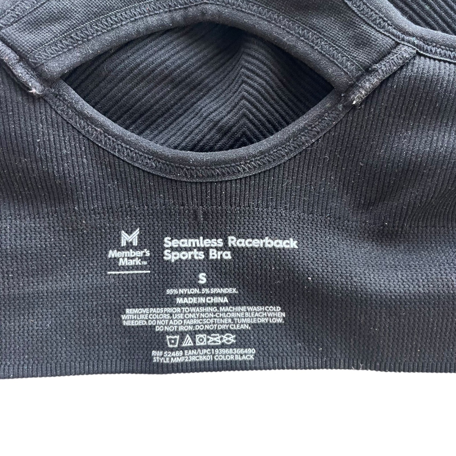 как выглядит Members Mark S Black Seamless Ribbed Athletic Workout Padded Racerback Sport Bra фото