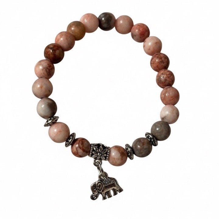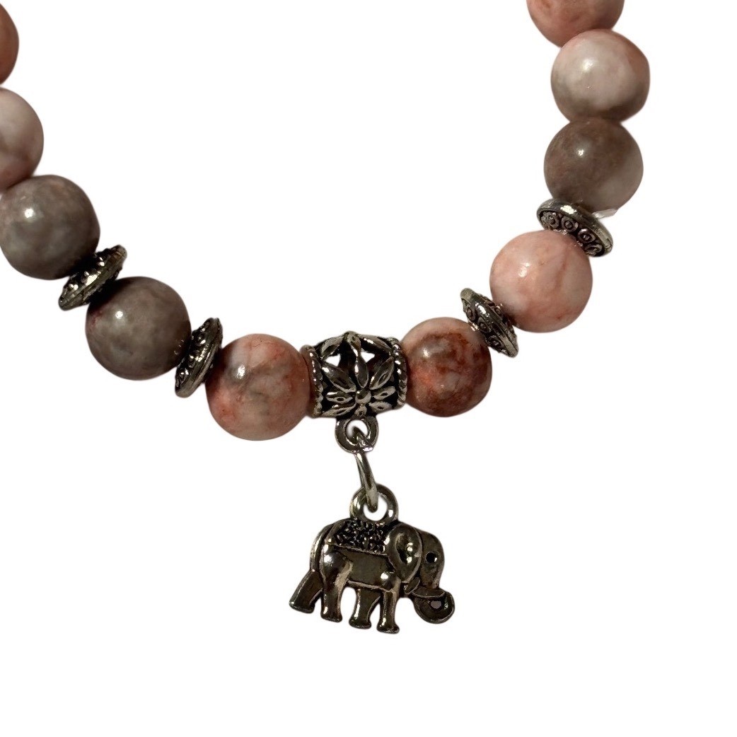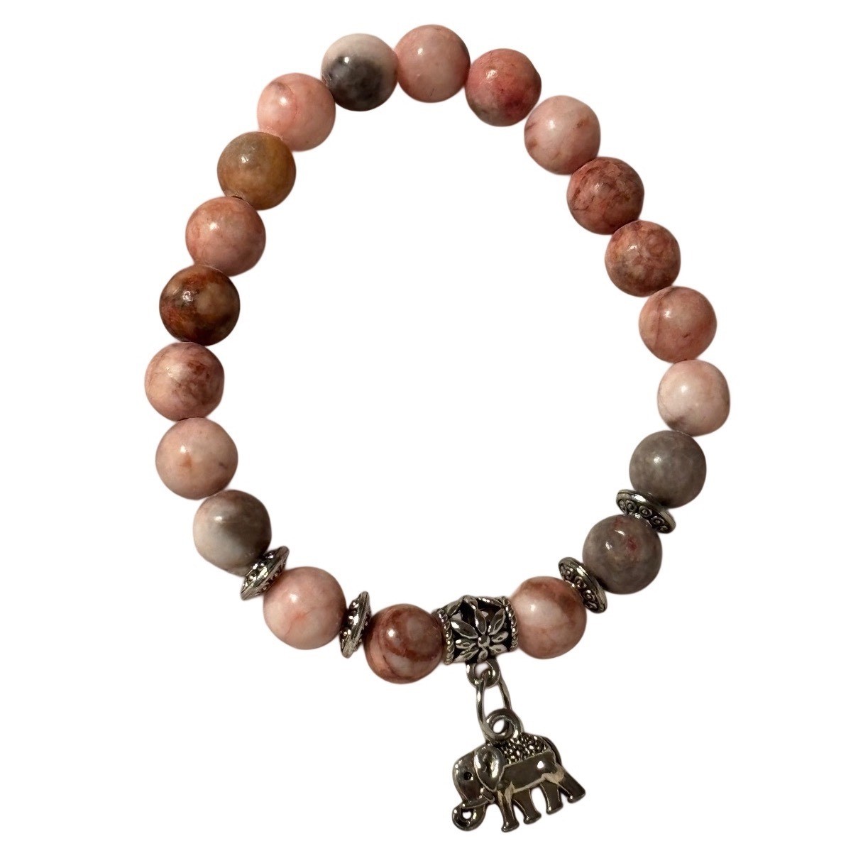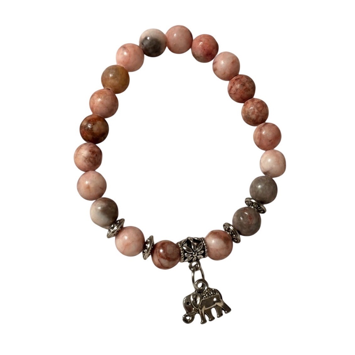 Pink Multicolor Stone Elephant Charm Beaded Stretch Bracelet Chic