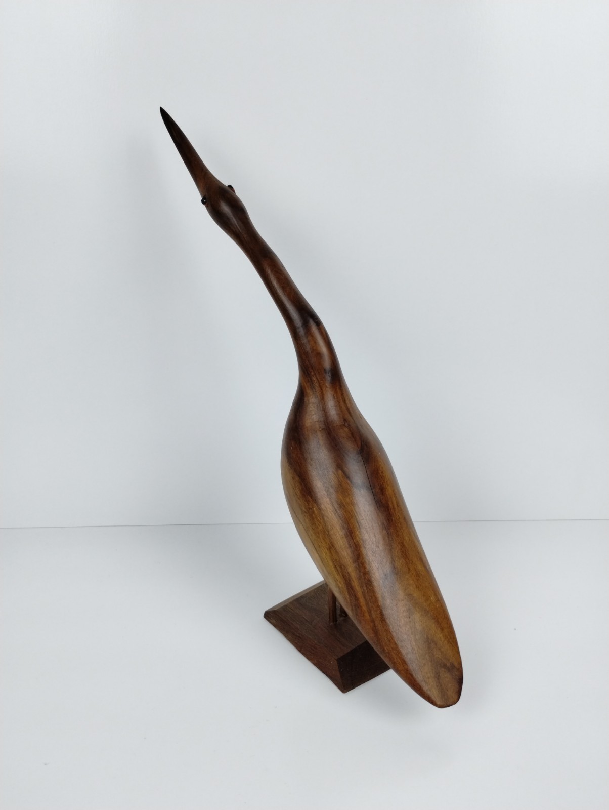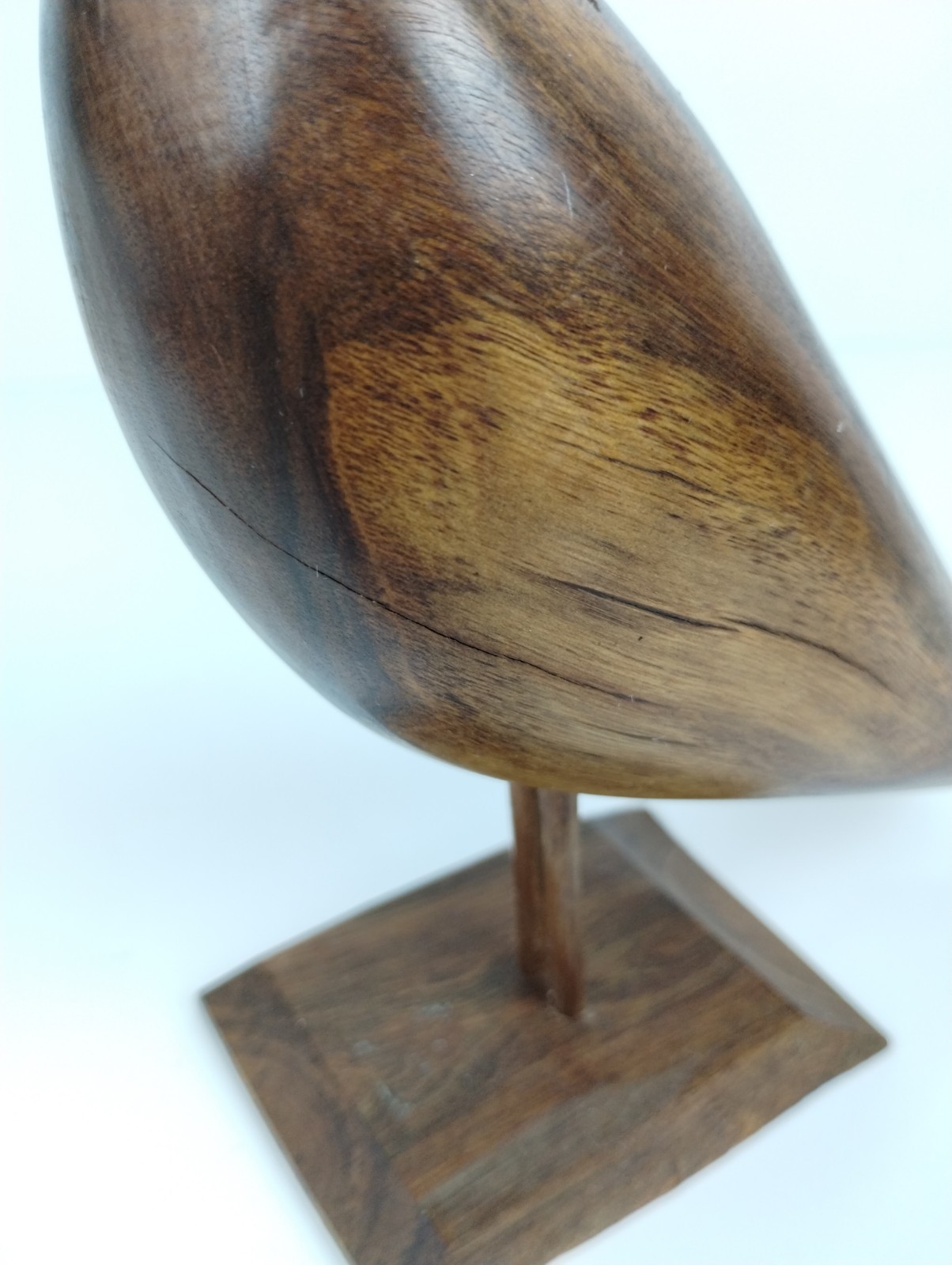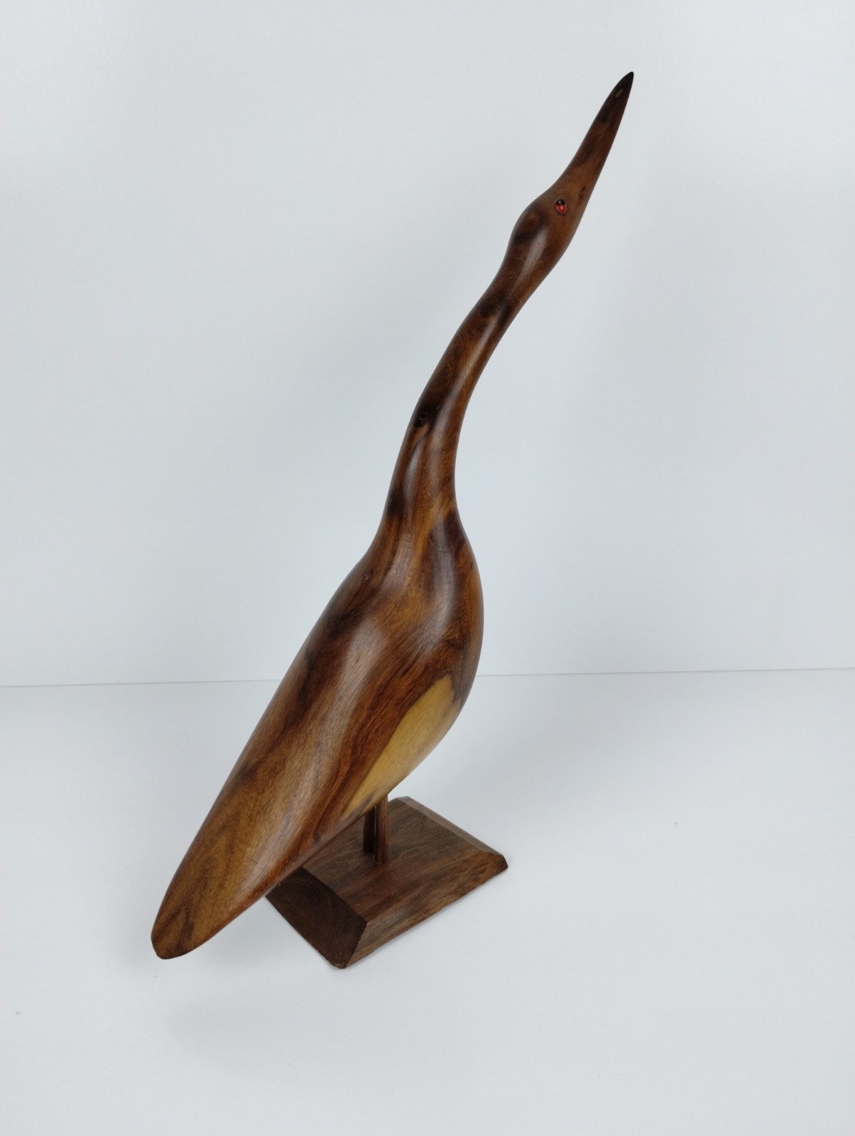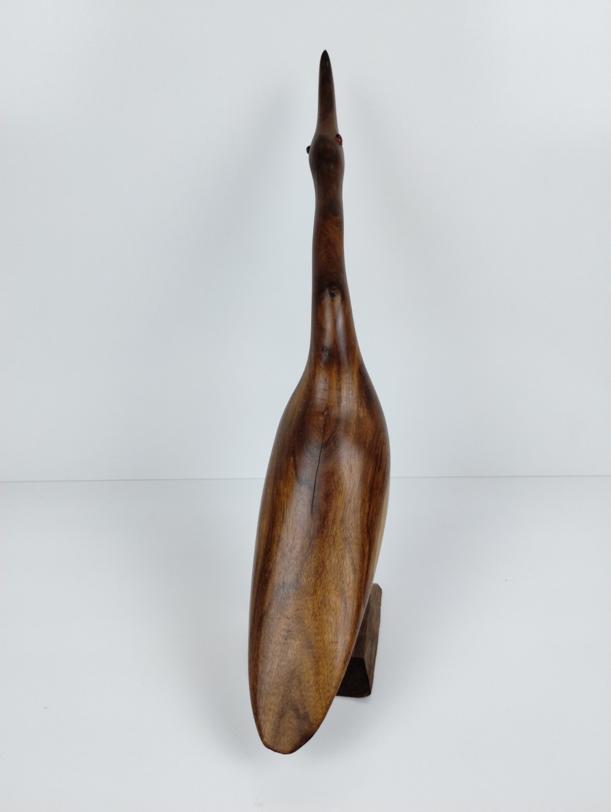 • Hand Carved Wooden Bird Sculpture Folk Art Long Beak Carving on Stand SPLIT READ