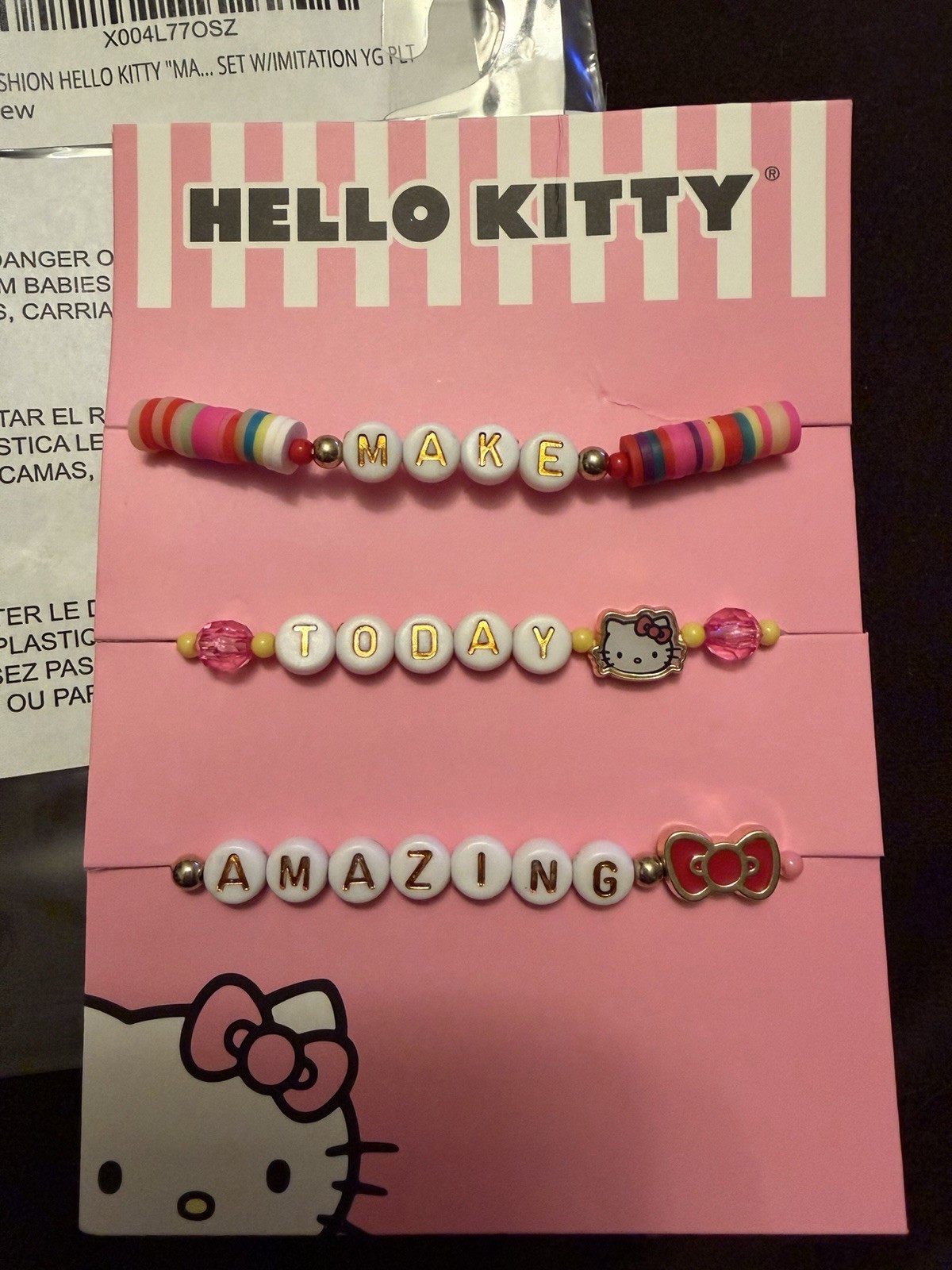 • Sanrio Hello Kitty NEW w Tags Make Today Amazing Beaded Bracelet Set 3