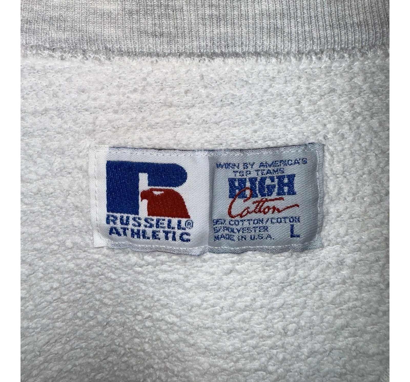 как выглядит Vintage 90s Russell Athletic High Cotton Heather Grey Striped Sweatshirt Sz L фото