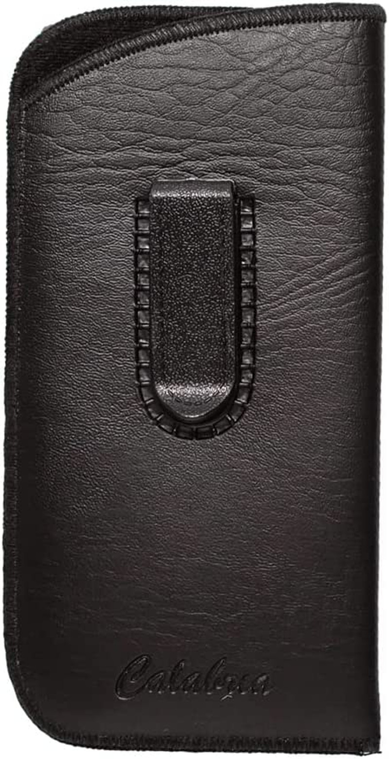 Soft Slip-In Glasses Case Vertical Pocket Clip Black Men Women Faux Leather Felt