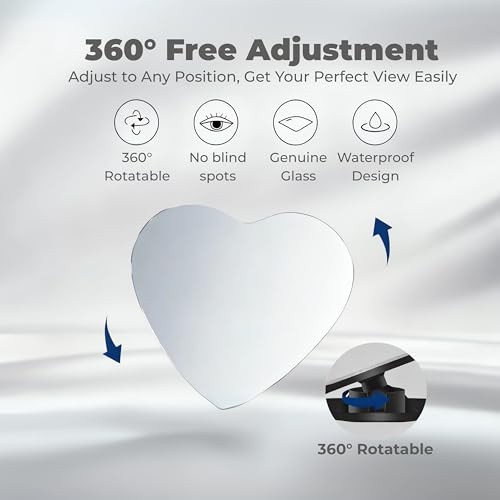 2 pcs Blind Spot Mirrors, 2 Heart Shaped HD Glass Convex 360 Wide Angle Side