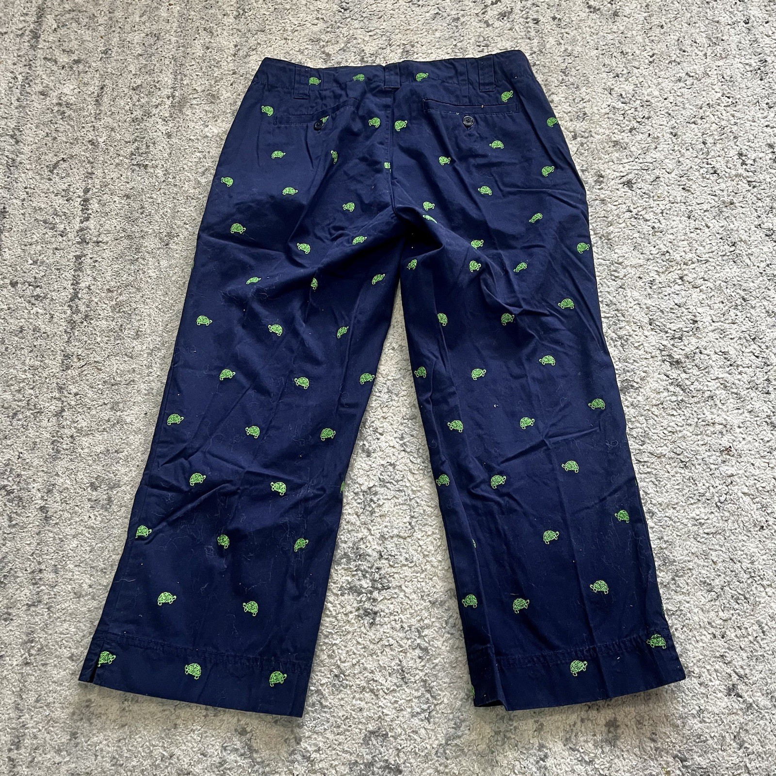 Lilly Pulitzer Navy Blue Turtle Embroidered pants VTG Sz 6 Coastal Beachy Artsy