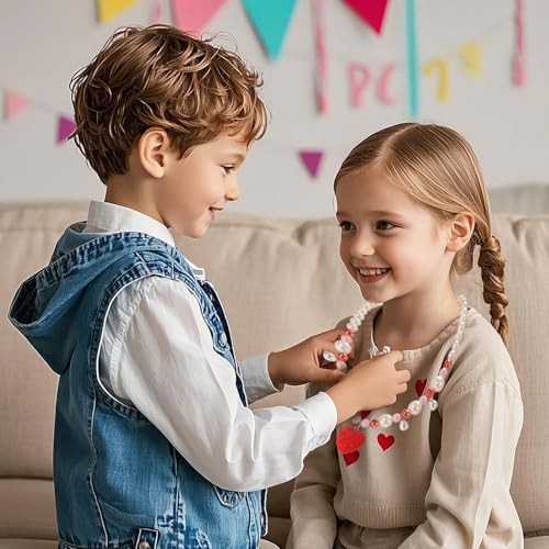 Kids Jewelry, 6 Sets Toddler Beaded Necklaces and Bracelets Jewelry for Red