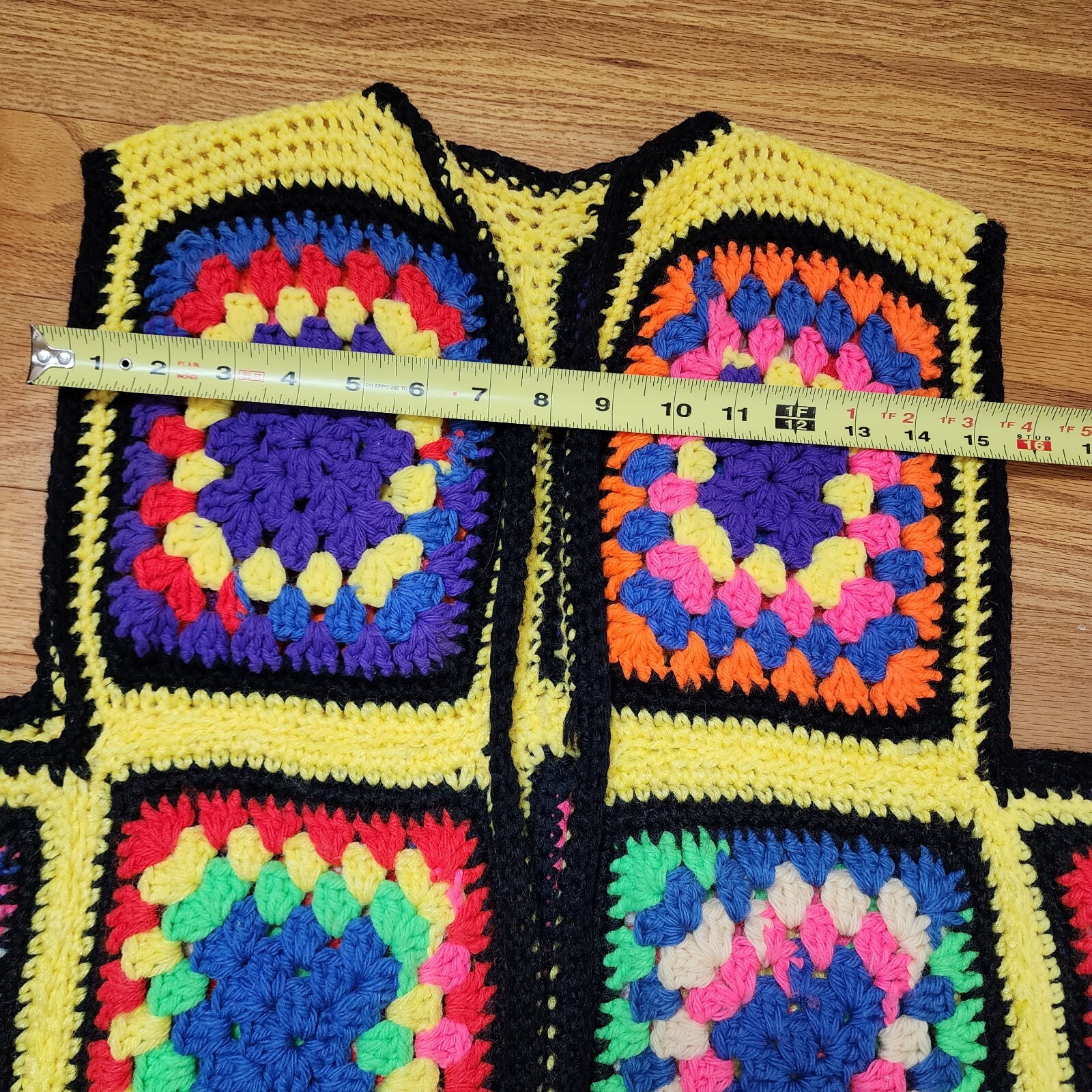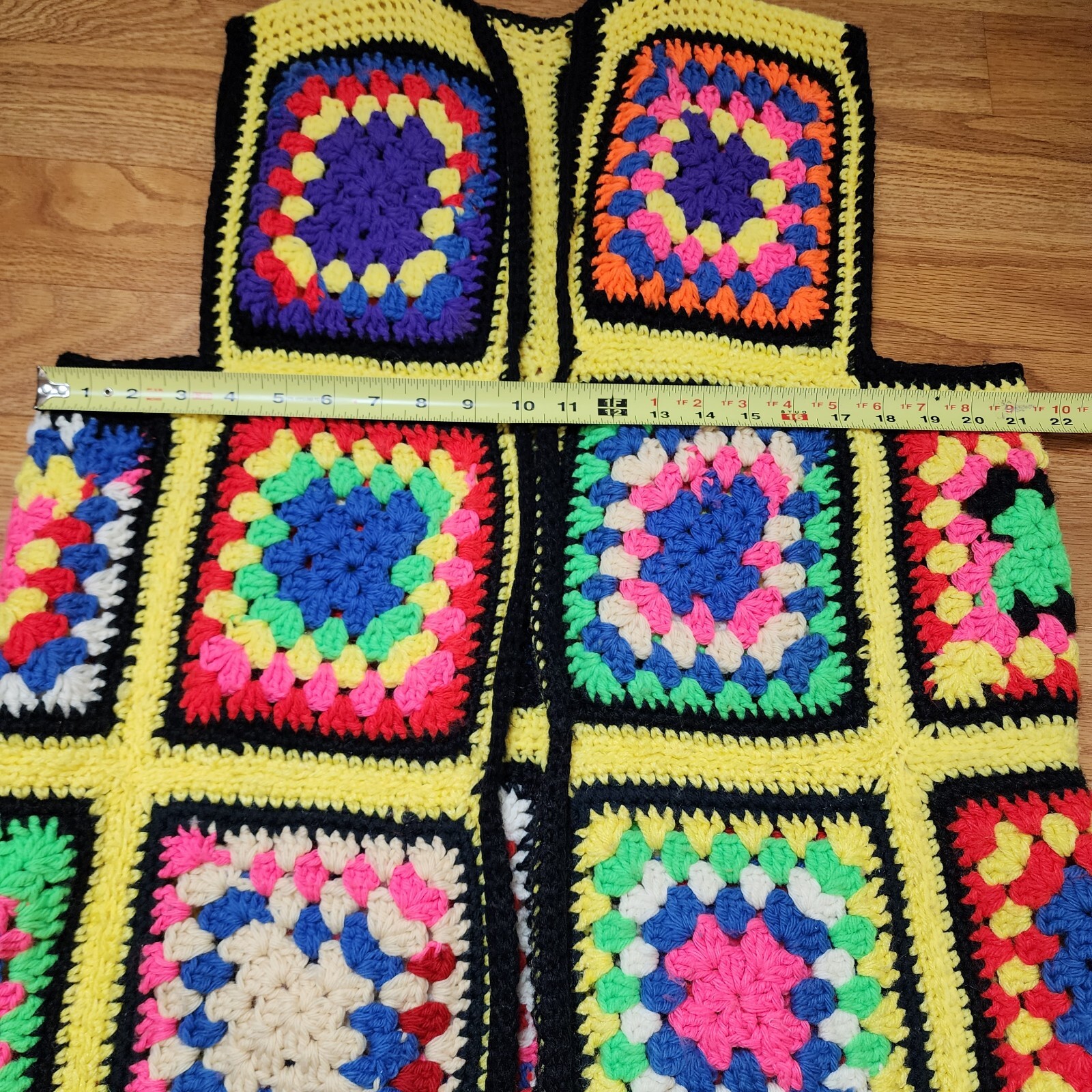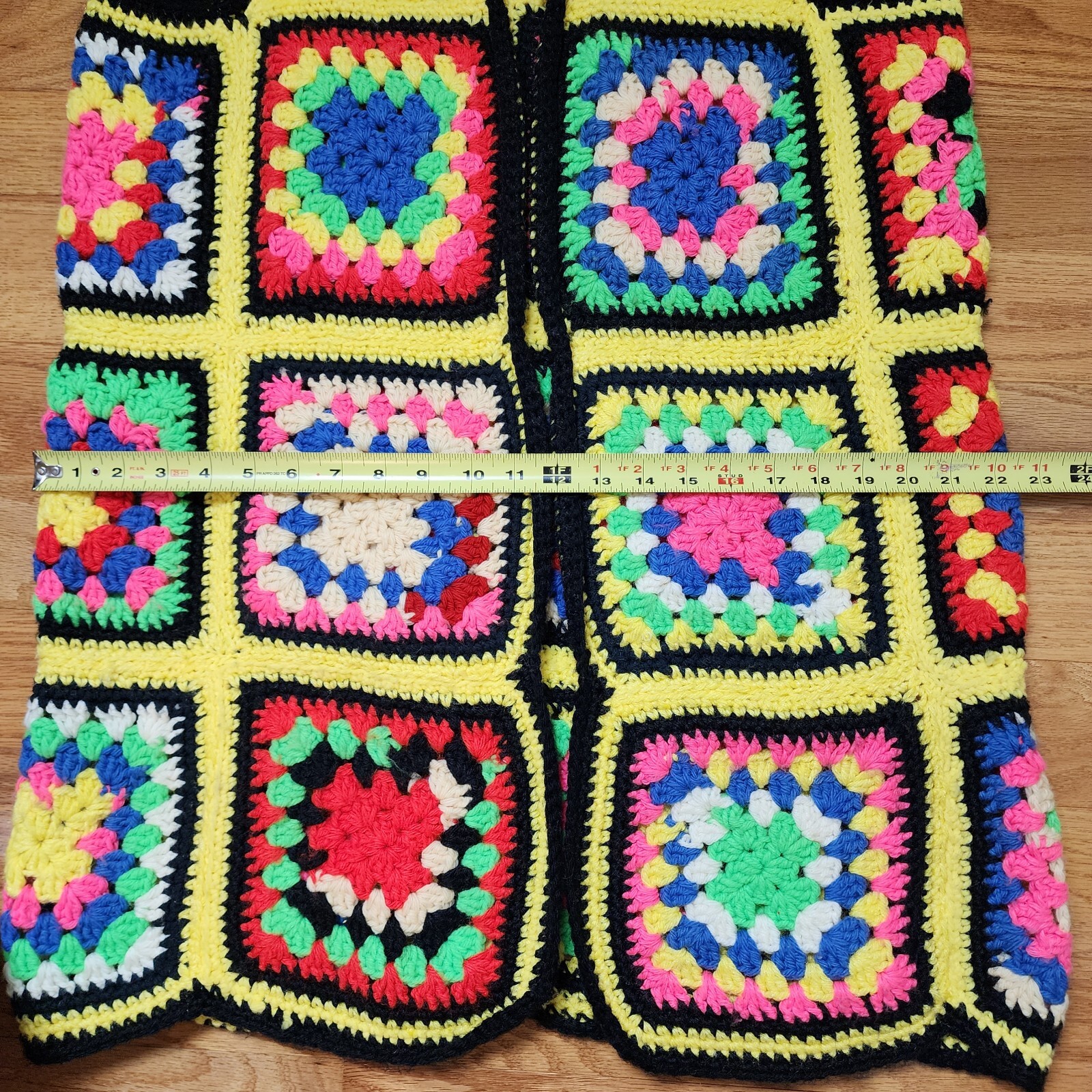 VTG 70s Vest Granny Squares Crochet Hippie Longline Open Sweater Handmade Mod
