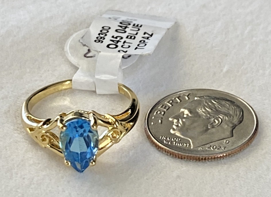 VTG 925 Sterling Silver 2 CT Blue Topaz Ring, Size 5.5, NOS, 2.3g