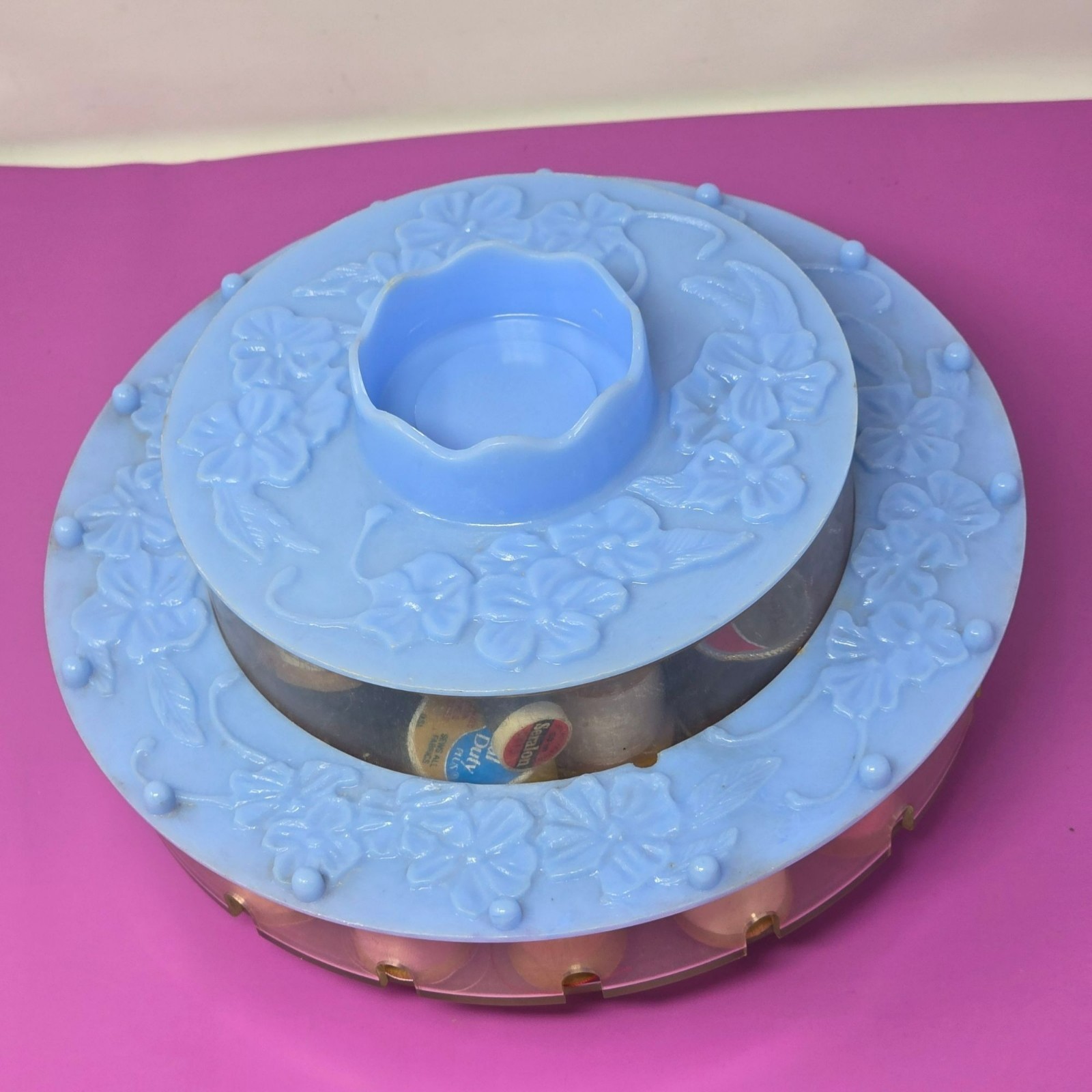 Vintage Blue Rotating Sewing Thread Organizer Spool Holder Threads Accessories