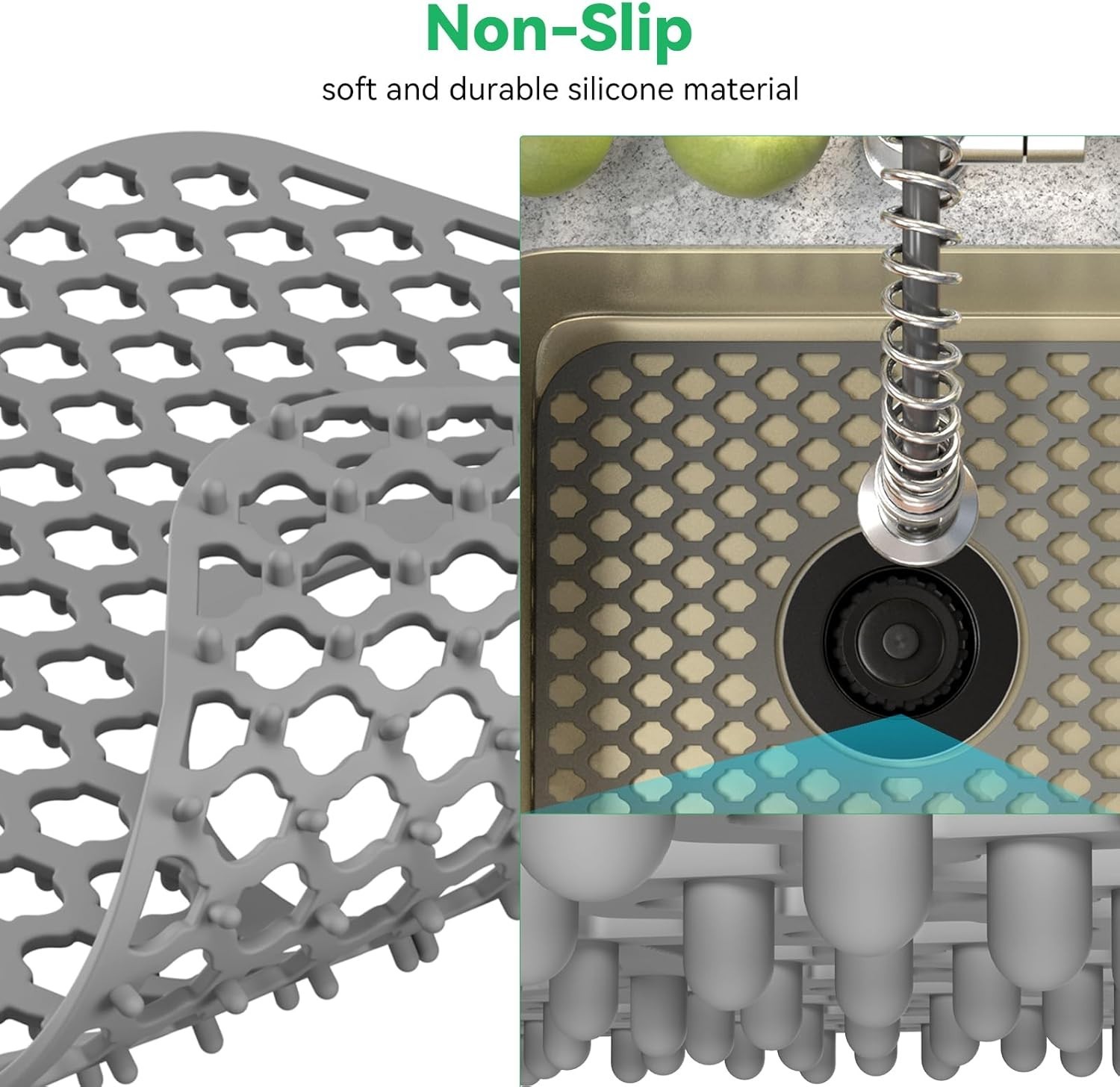 TOOVEM 2PC Silicone Sink Mat Protectors Kitchen Sink Grid Non-Slip w/Drain