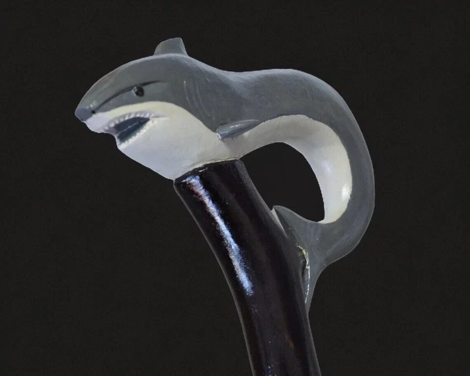 Hand carved wooden Shark handle walking stick for men women walking cane gift